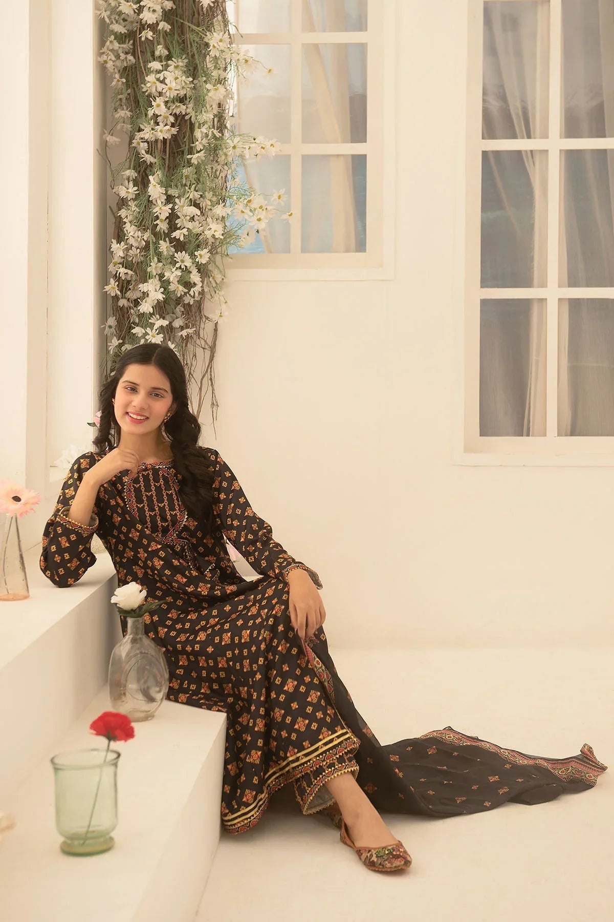 "Top: Black Herringbone Digital Printed Kurta with Laces