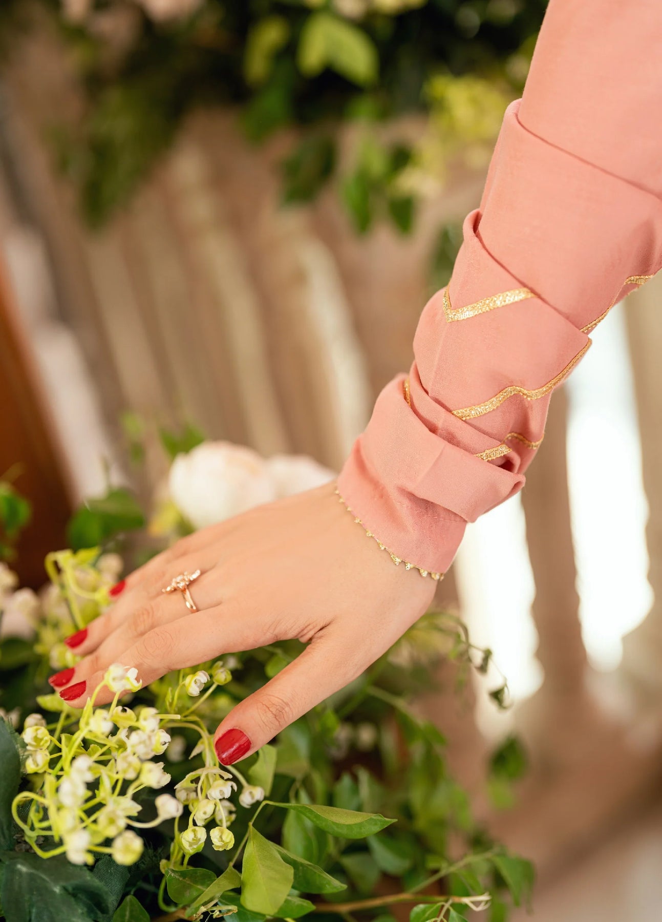 Color: Pink Fabric of shirt: Dobby Fabric of dupatta: Chiffon Fabric of trouser: cotton silk Model Height: The model is 5'5 and wears a small size.
