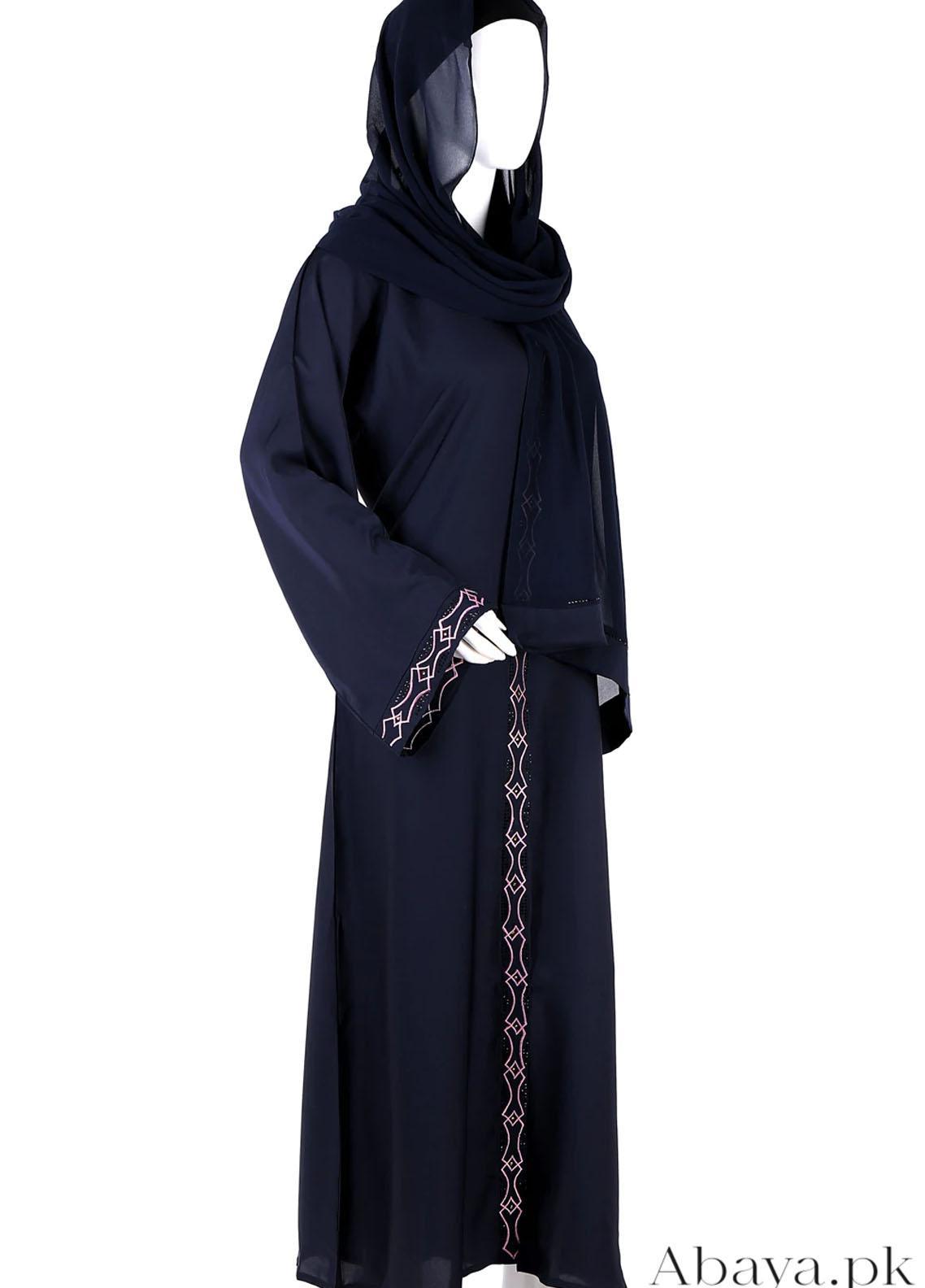 Product description: Offering an impeccable look with our perfectly design Navy Blue Abaya featuring Pink embroidered details and delicate stonework. This uniquely designed abaya is an array of luxury and offers ultimate modest style.