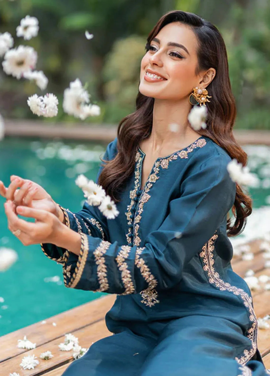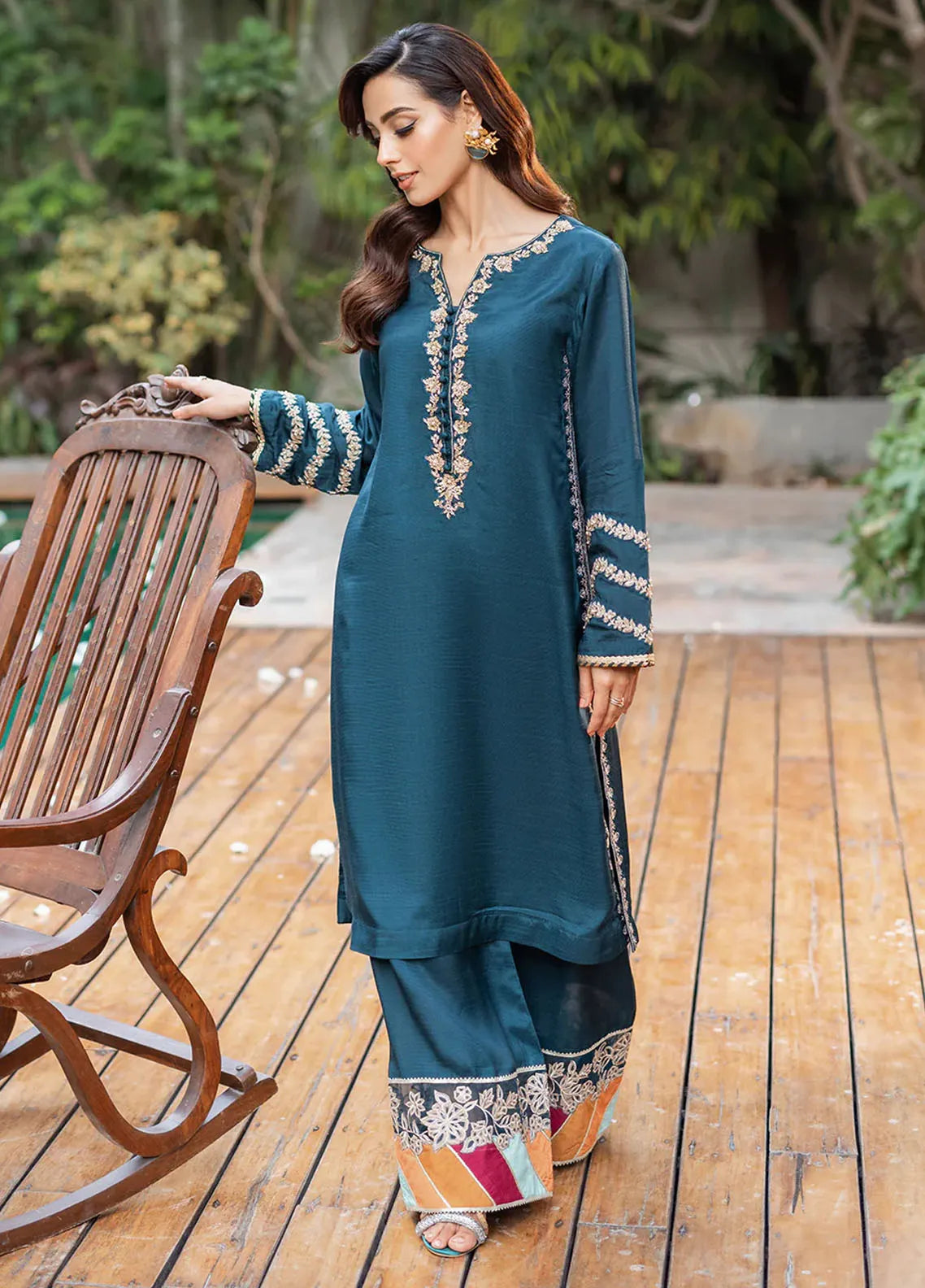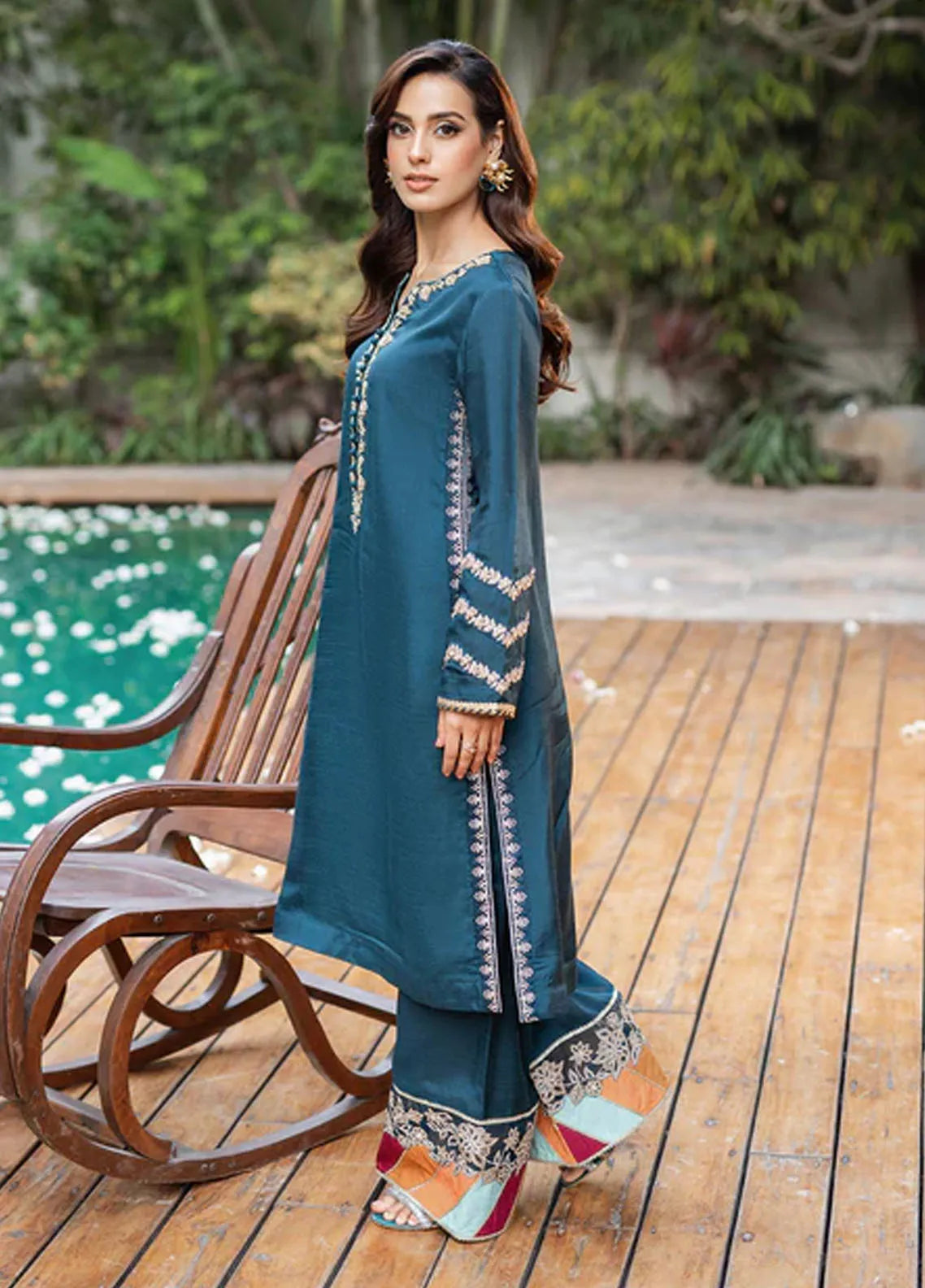 Azure Pret Embroidered Silk 2 Piece Suit Teal Temptation