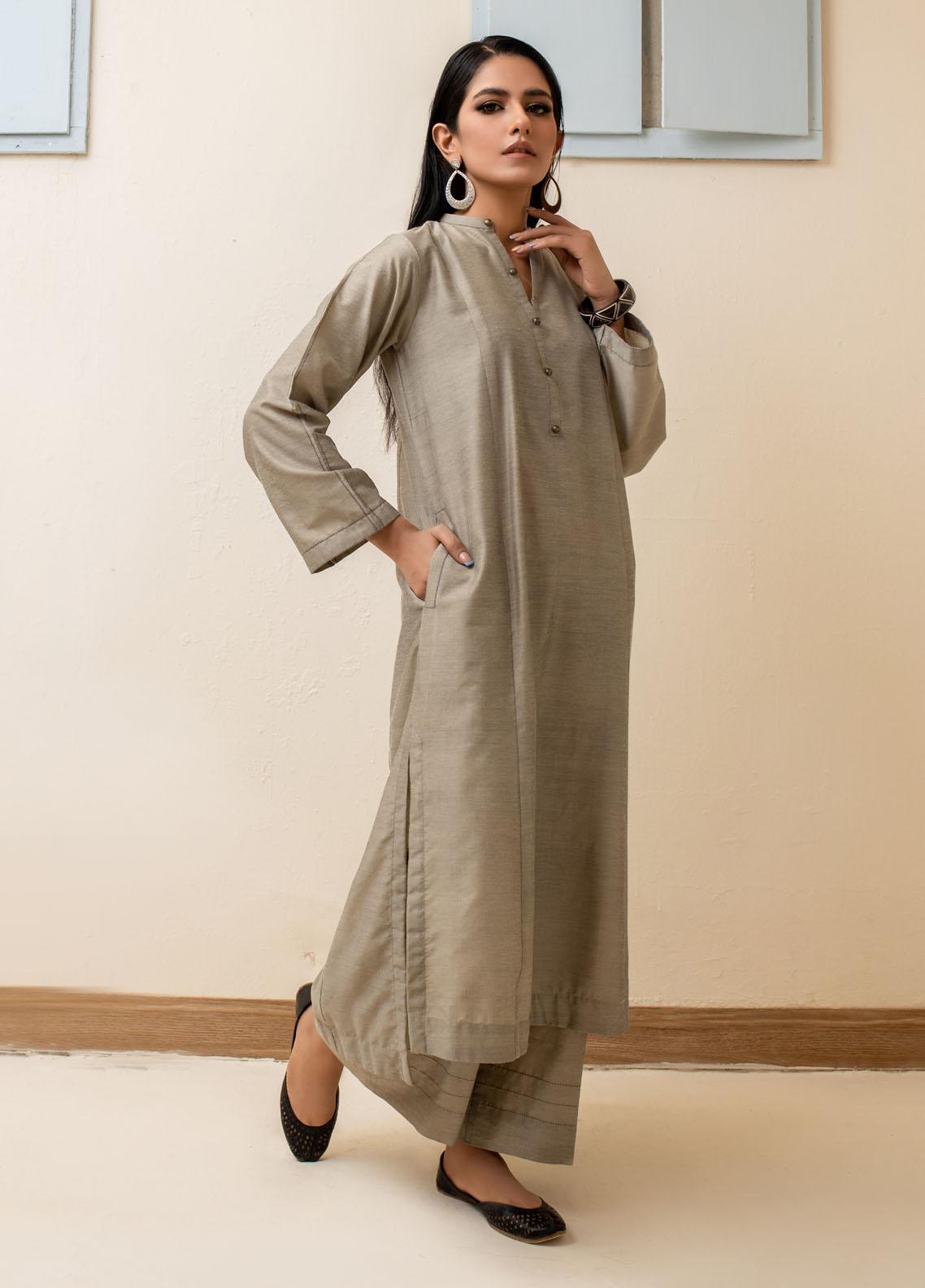 2 Piece Ready to Wear Solid Staple Cotton Suit