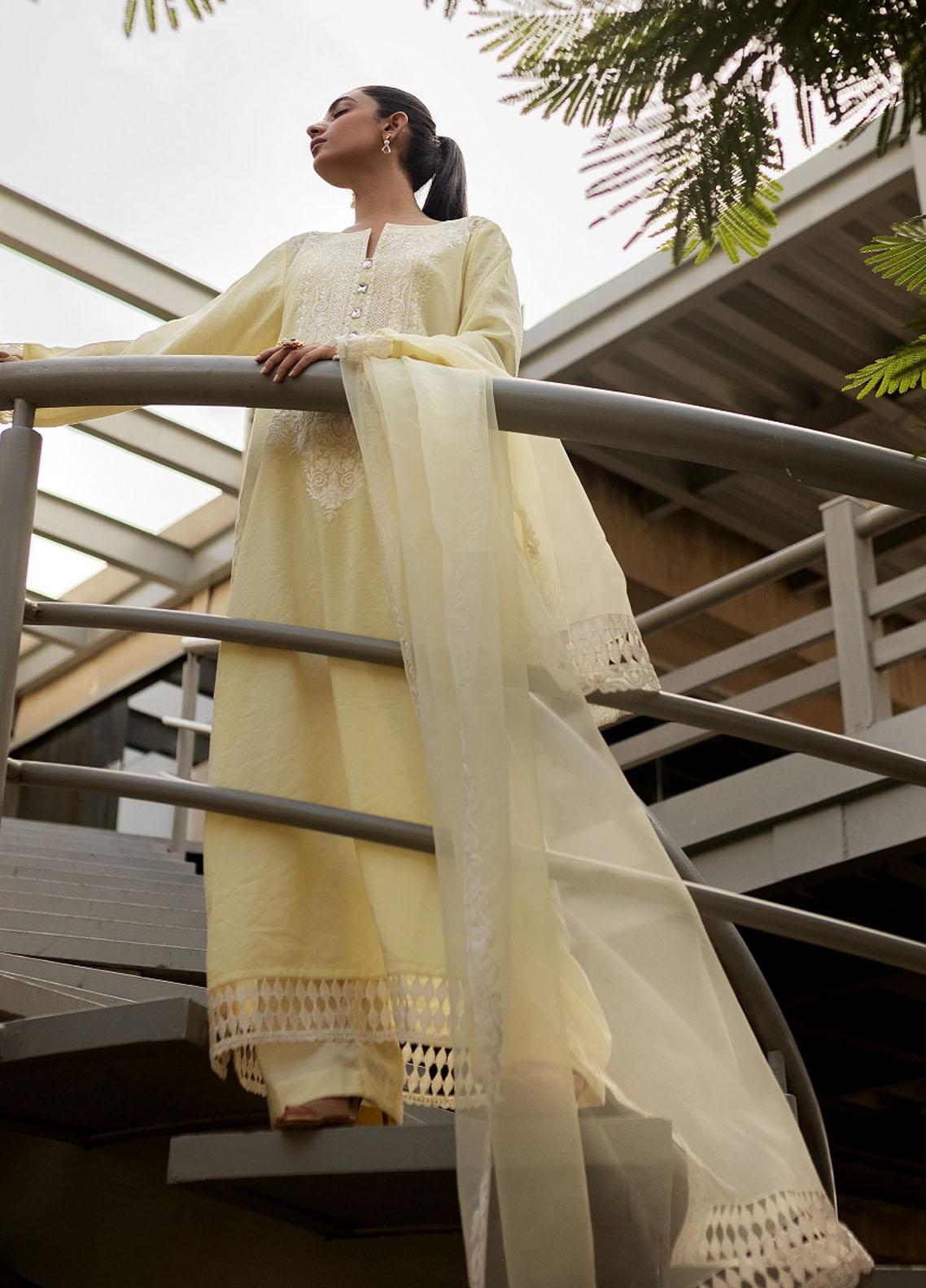 kaya osk silk embroidered with white neckline detailing on sleeves.it is paired with organza dupatta.