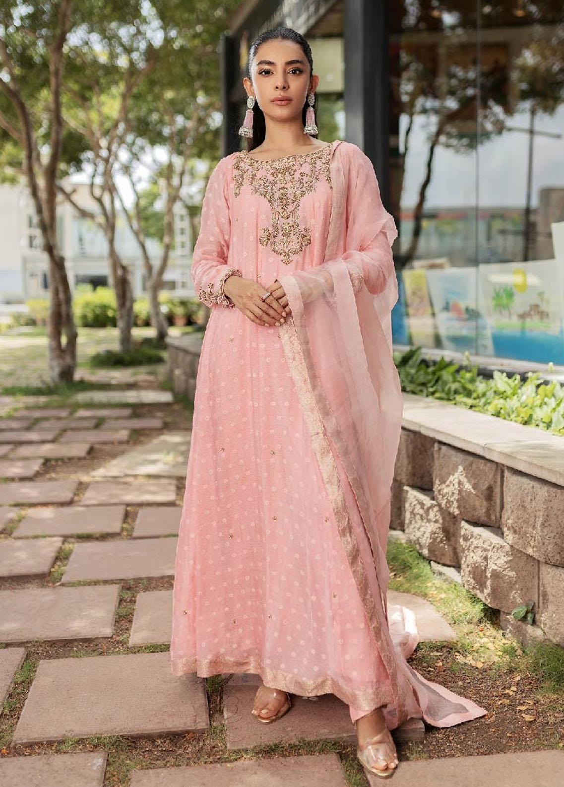 meticulously crafted from a remarkably glamourous shade tea pink. Ameena with its intricate crafted details strikes the perfect balance between design a must have with pure organza dupatta.