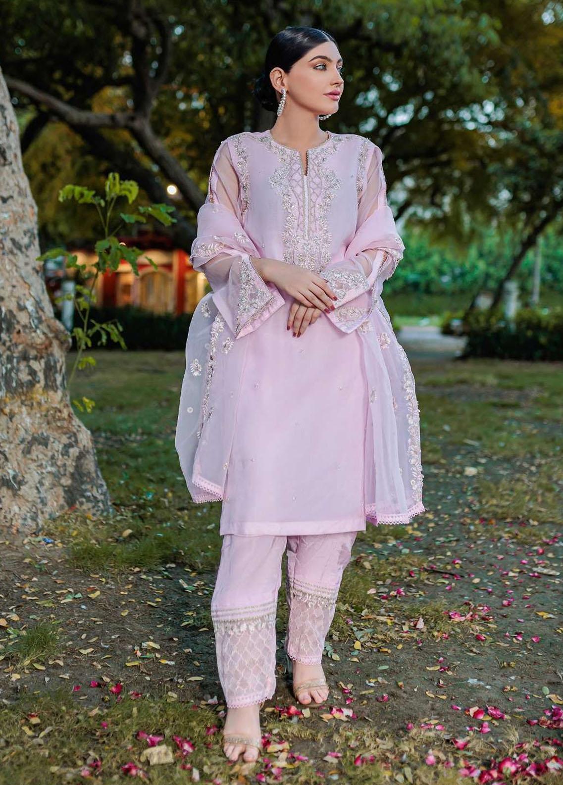 rediate festive collection with this powder pink coloured with straight loose shirt ensembled with embroided neckline and heavy handtouch on it.