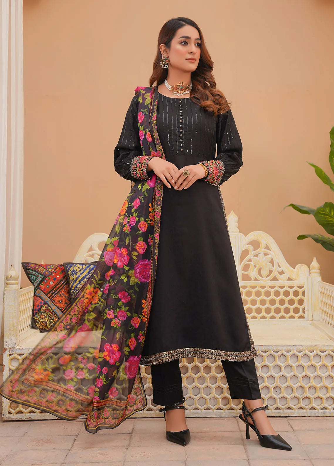 Madame Pret Embroidered Viscose 3 Piece Suit 7032