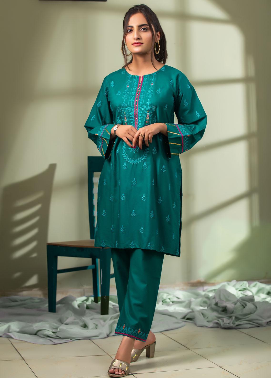 • This beautiful Sea green hued shirt with magnificent embroidery on neck followed by elegant bud Embroidery all over is great for achieving stunning summer looks.