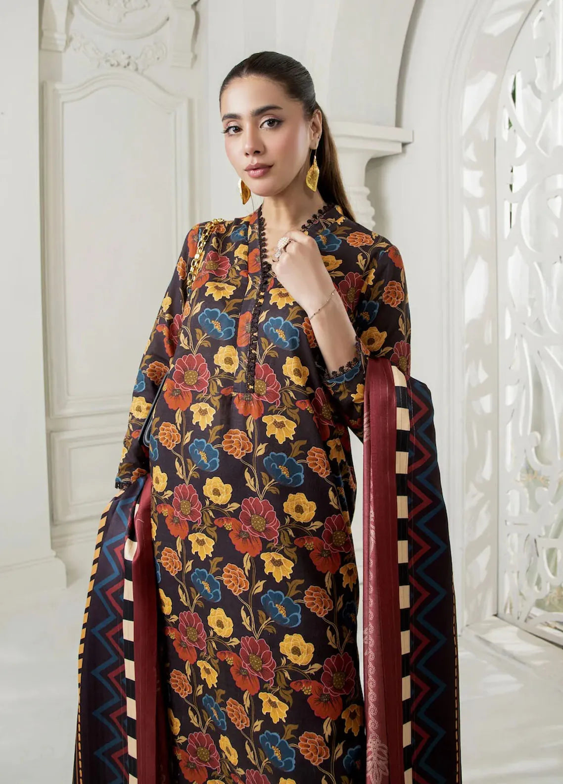Meerak Pret Printed Khaddar 3 Piece Suit Ember Rose