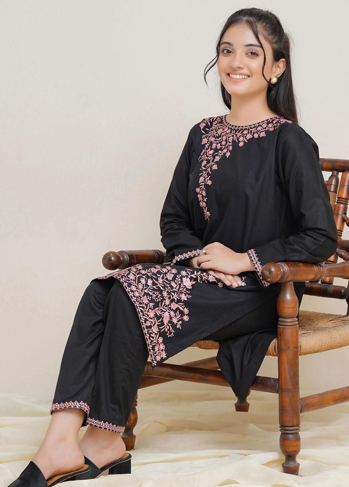 Black Elegance with a Touch of Pink Discover our Summer Vibes 2 Piece Set for Womens Top A classic black kurta with modern styled floral embroidery on its neckline and sleeves.Trouser Straight trousers with delicate embroidery on the bottom.