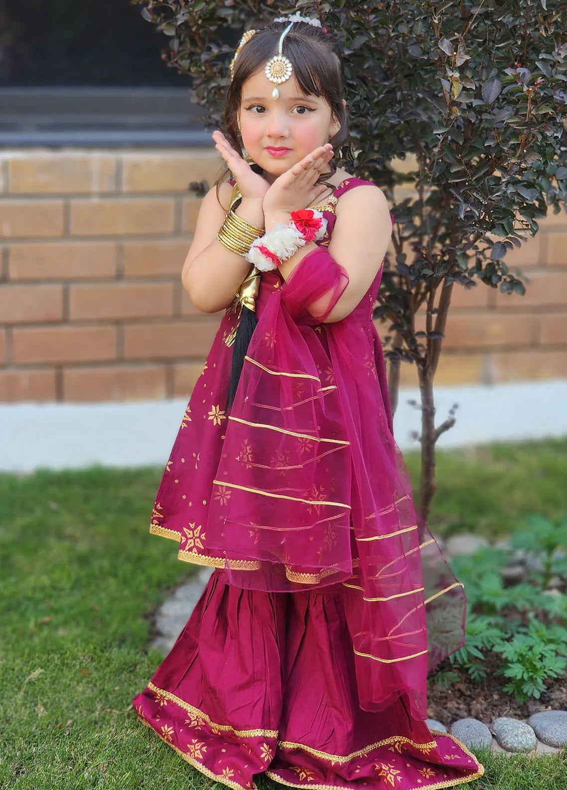 Modest Pret Casual Cotton 3 Piece Suit Toddlers 3 Piece Cotton Suit - 8575 Purple