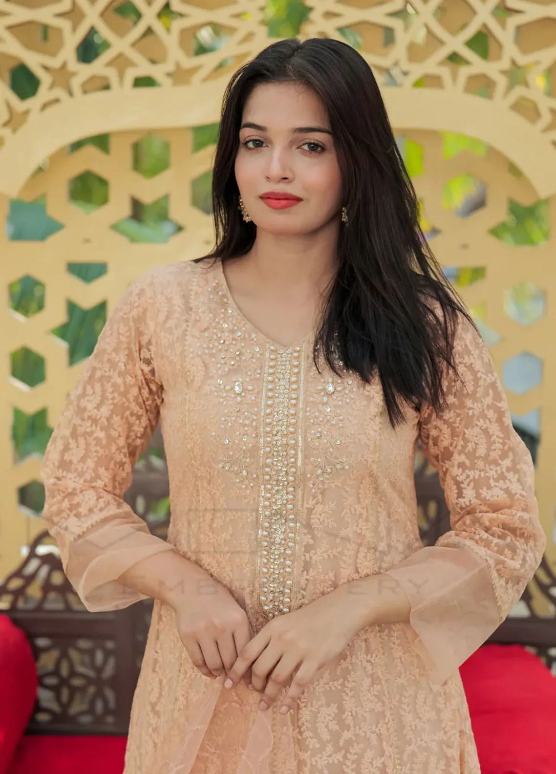 Mona Embroidery Pret Embroidered Chiffon 3 Piece Suit Delicate Drapes Peach