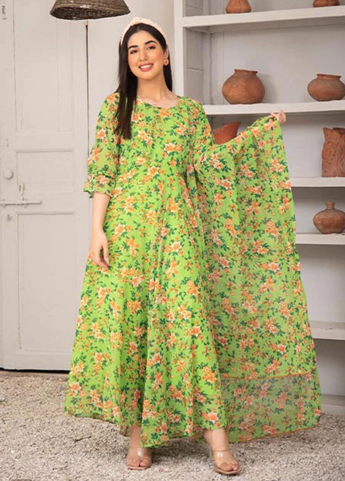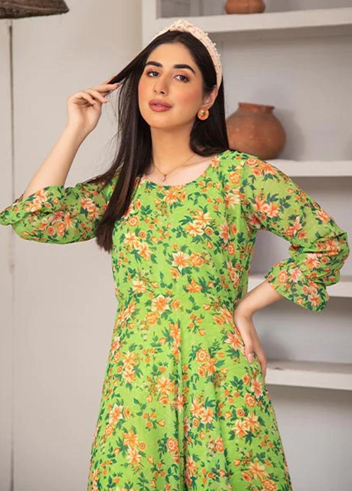 Nazmina Pret Printed Chiffon 2 Piece NZ23F FRT-11 Pea Green Bird