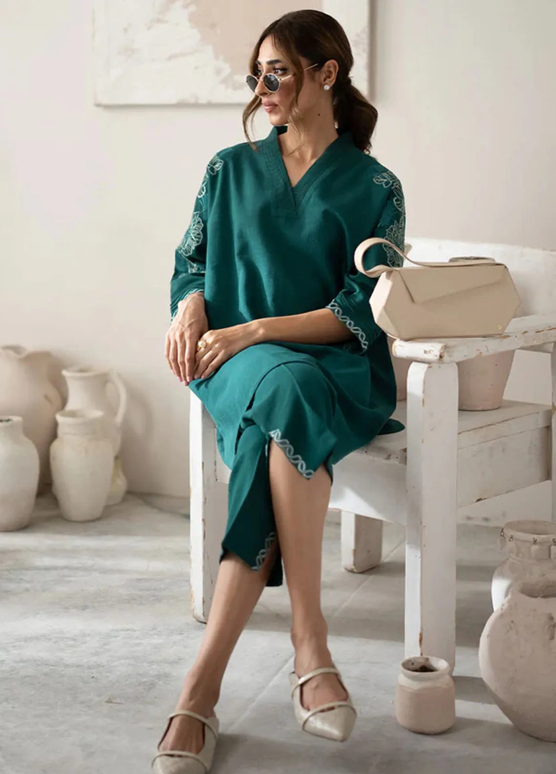 Sahar Pret Embroidered Slub Khaddar 2 Piece Suit AWEK-ZB-V1-01 Teal Ivy
