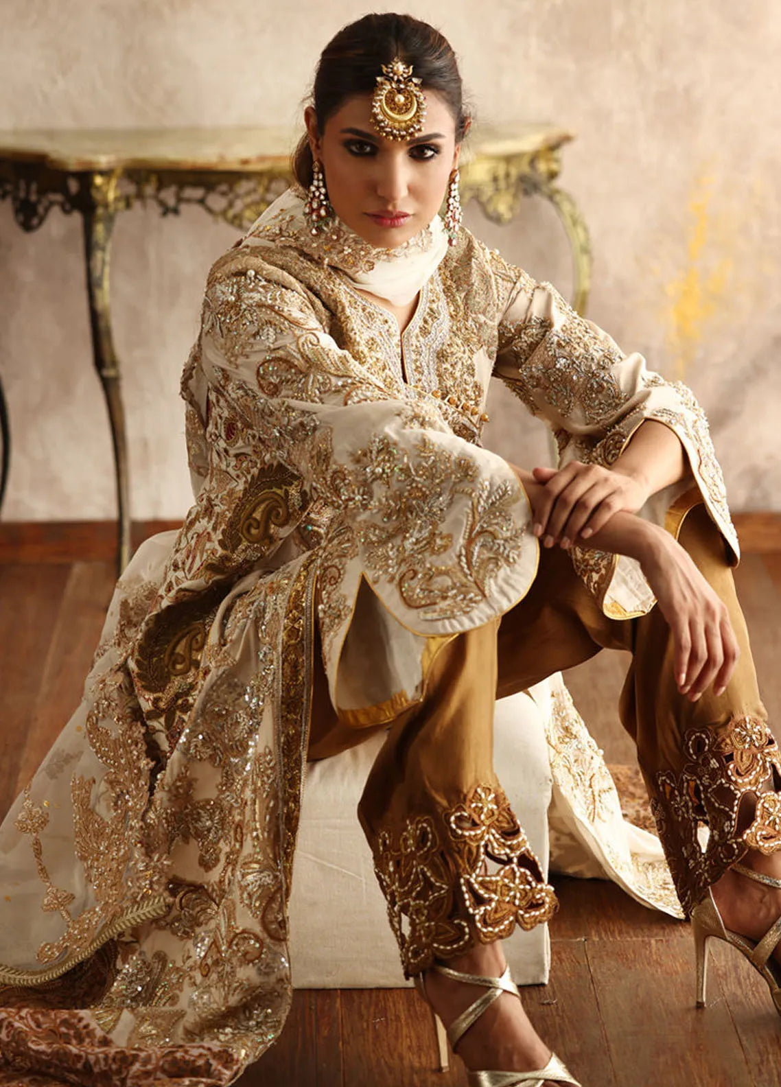 • Heavy Formal Ivory Outfit Adorned With Intricate Tilla Outline And Exquisite In House Embroidery Featuring Adda Work Creating A Truly Unforgettable Look. The Dupatta Is Price Separately.