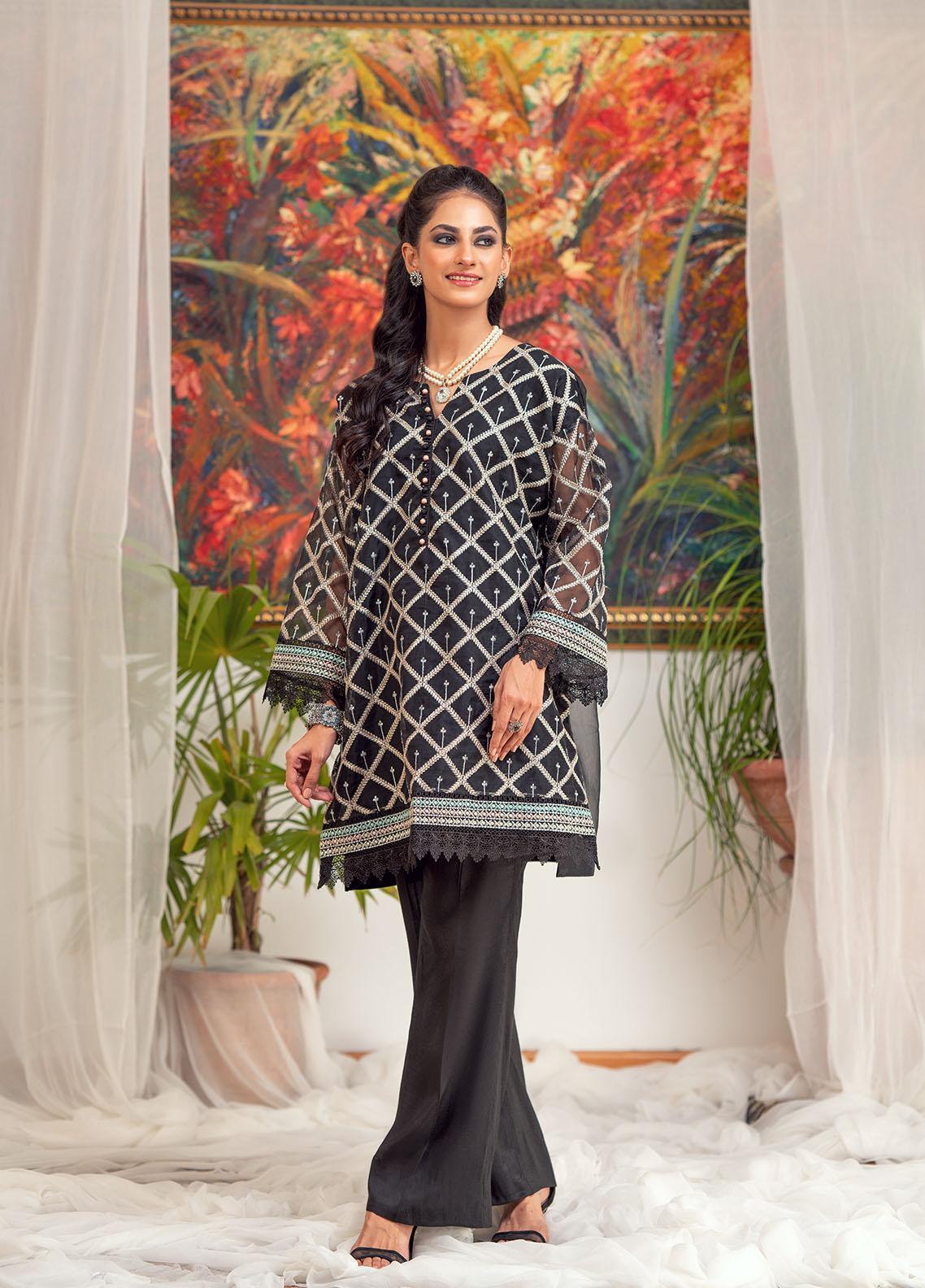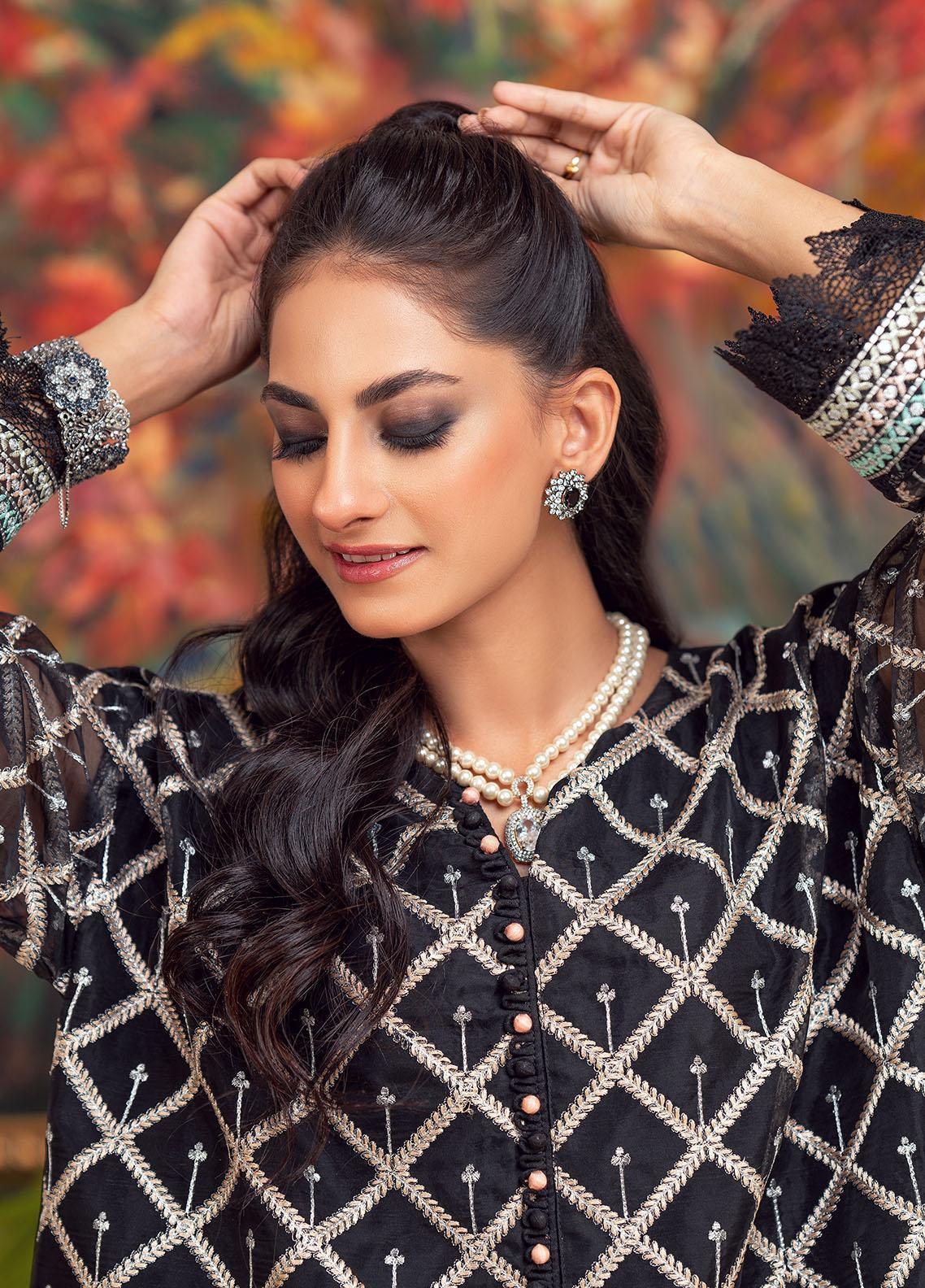 Zaaviay Luxury Pret Embroidered Organza 2 Piece Dress ZV22OG EBONY