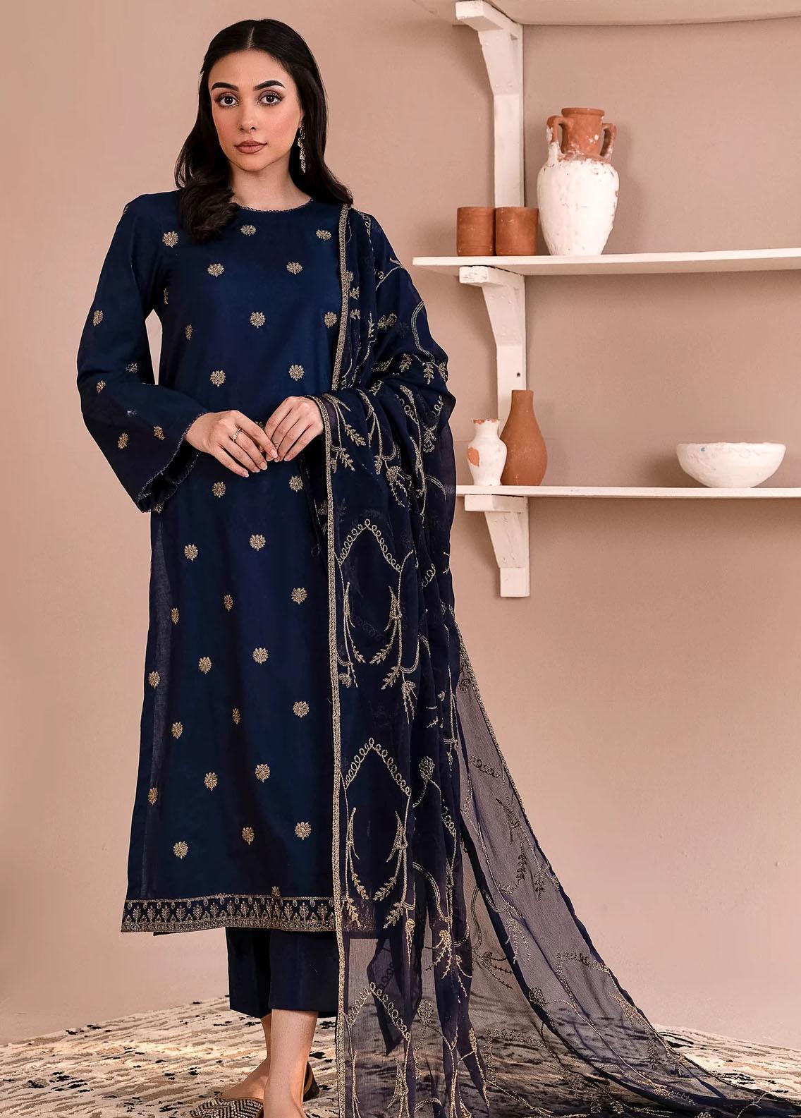 Zarif Pret Embroidered Cambric 3 Piece Suit CP-03 Midnight