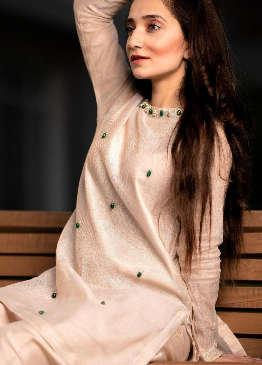 PSK Couture Pret Embroidered Tissue 4 Piece Suit GOLD DUST