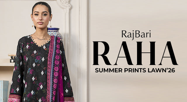 RajBari brings a broad collection of unstitched premium fabrics and embroidered ensembles to Sanaulla Store, featuring everything from classic lawn to silk, viscose, net, and jacquard. Known for artistic design, eye-catching embroidery, and wearable prints, RajBari offers an array of choices for women seeking both casual summer wear and elevated statement pieces.