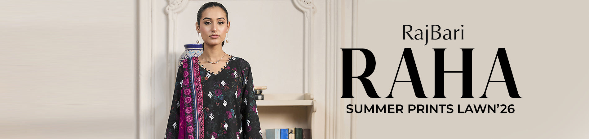 Raha Summer Prints by RajBari Unstitched Lawn Collection 2026 Vol-I, offering refreshing design stories and wearable patterns suitable for casual daytime outfits.