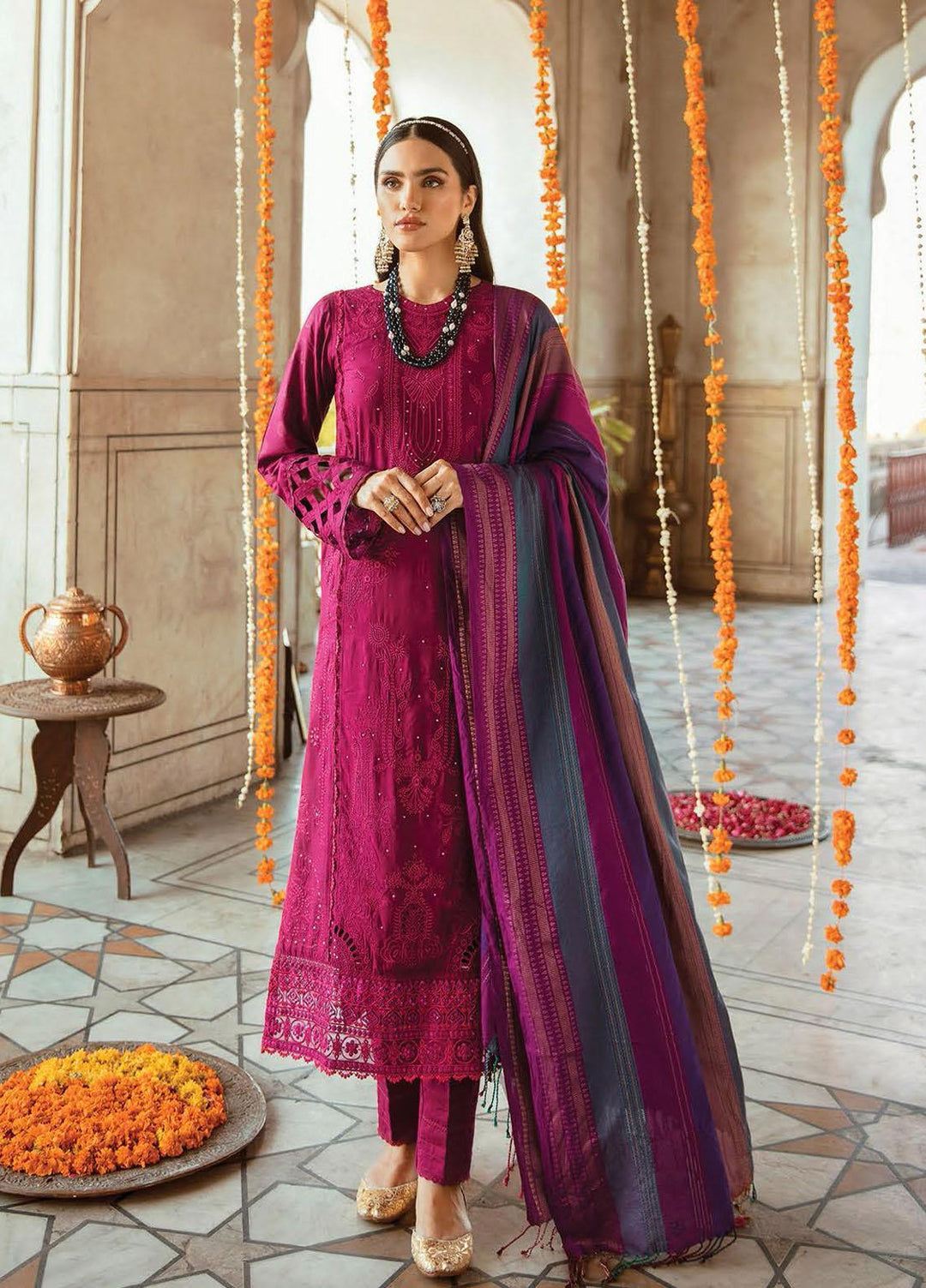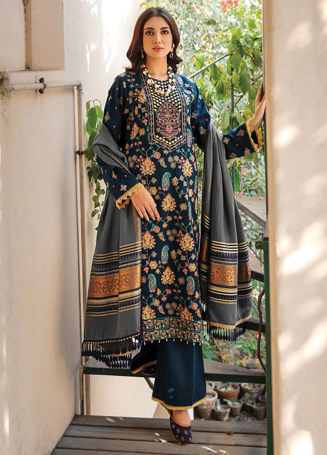 You want to wear lavish dresses this winter? RajBari premium linen collection is here that is providing you newest style and eye catchy hues, this is 3 piece stitched collection every single dress in design in a fantastic technique of embroidery work with latest style and patterns, shirts are design with gorgeous embroidery and luminous network of threads embellished on front, neckline and daman, pashmina shawls are also furnished with beautiful prints and amazing embroidery which will protect you in chilly winter season.