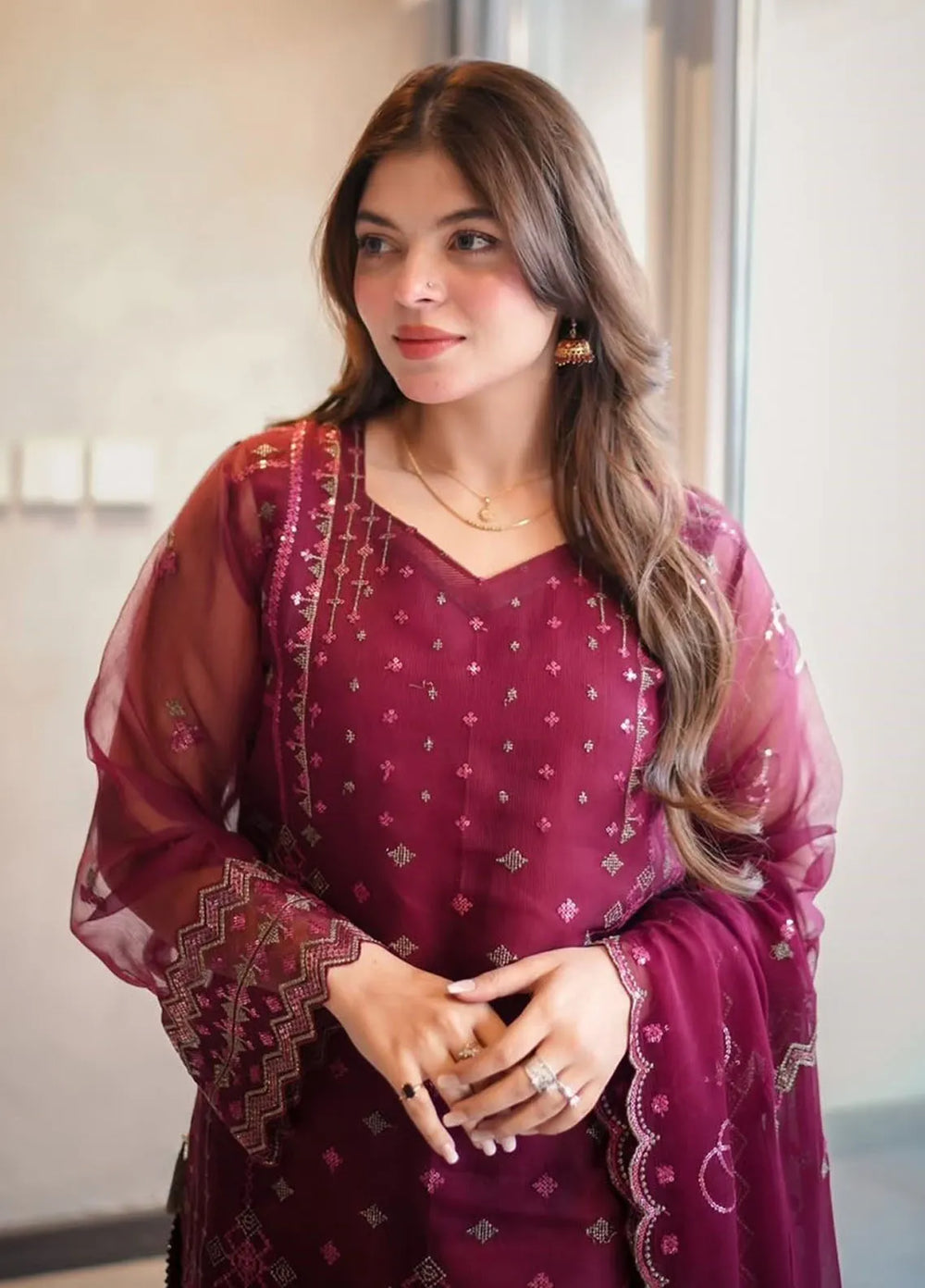 Fozia Khalid Pret Embroidered Organza 4 Piece Suit Maroon