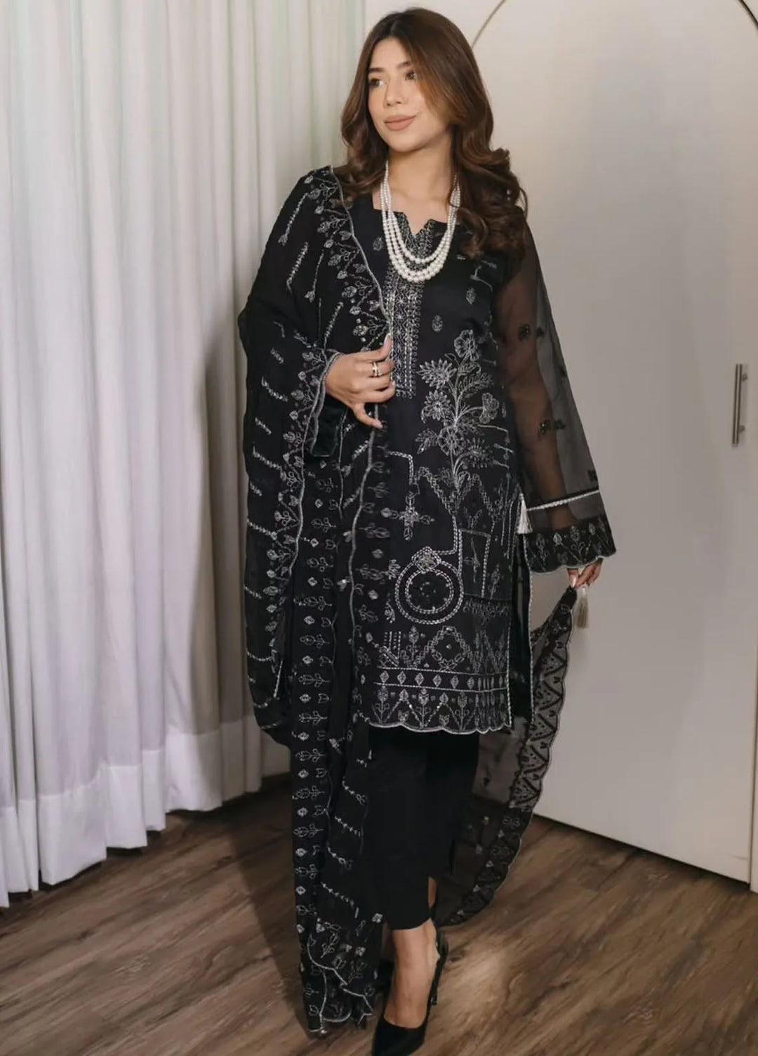 Fozia Khalid Pret Embroidered Organza 4 Piece Suit Black