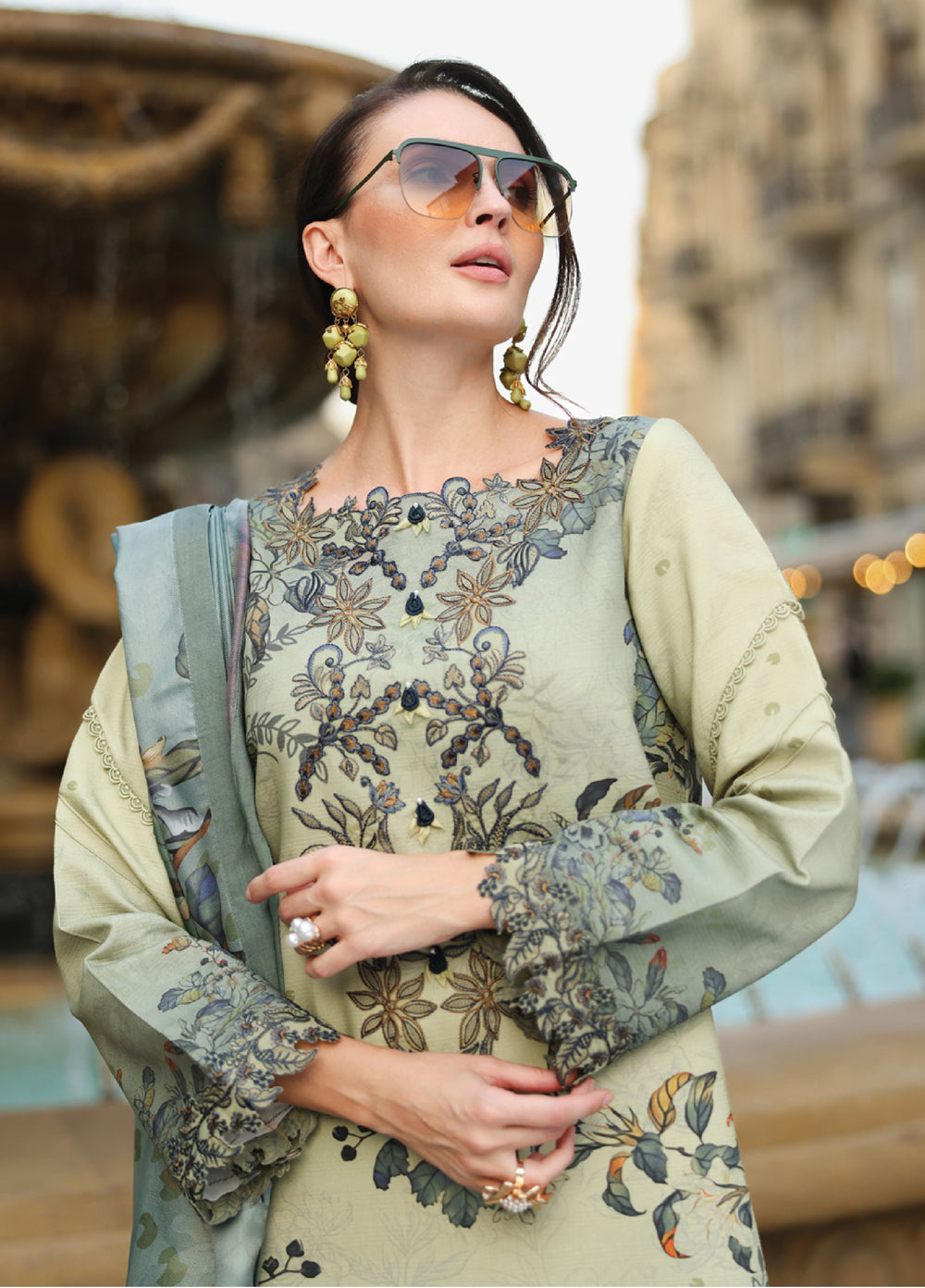It has 3 piece unstitch suit that comes with varieties of designs, colors, and fabrics that give you an amazing look and will surely enhance your personality at any party or function. Rang Rasiya Linen collection has embroidered shirt with printed sleeves, dyed trouser, and chiffon dupatta.