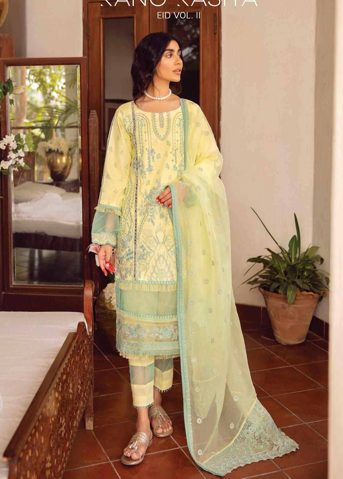 Maskan By Rang Rasiya Embroidered Lawn Suits Unstitched 3 Piece RR22M 08 Daffodil - Eid Collection