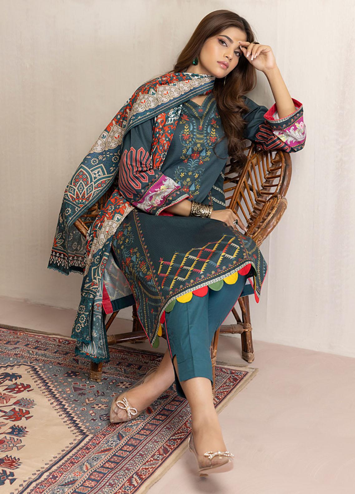 Regalia Textiles Printed Cotton Satin Suits Unstitched 3 Piece RGT22CS D1 - Festive Collection
