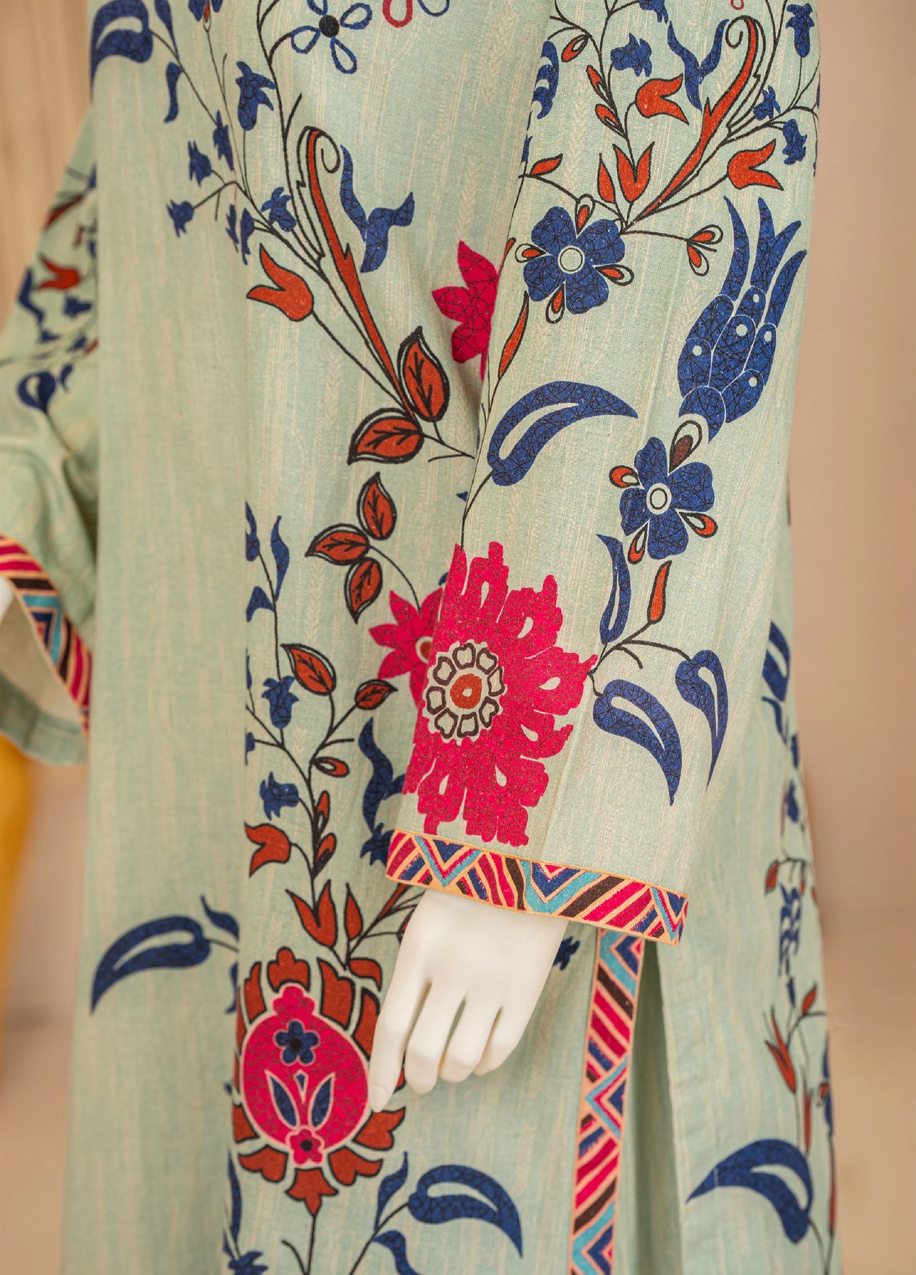 A minimalist yet captivating co-ord set featuring contemporary floral and botanical digital prints on both front and back, creating a fresh and sophisticated appeal. The long kurta is styled with a boat neckline and delicate loop detailing at the shoulders, paired with printed trousers for a cohesive, polished look.