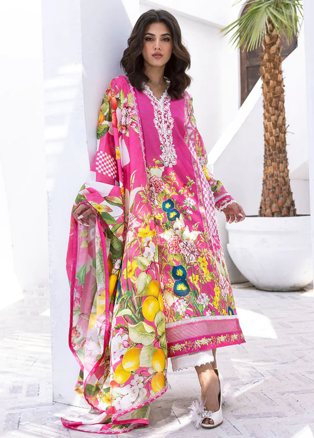 Azalea by Roheenaz Printed Lawn Suit Unstitched 3 Piece RNZ24A Radiant Rose RNZ-04A - Summer Collection
