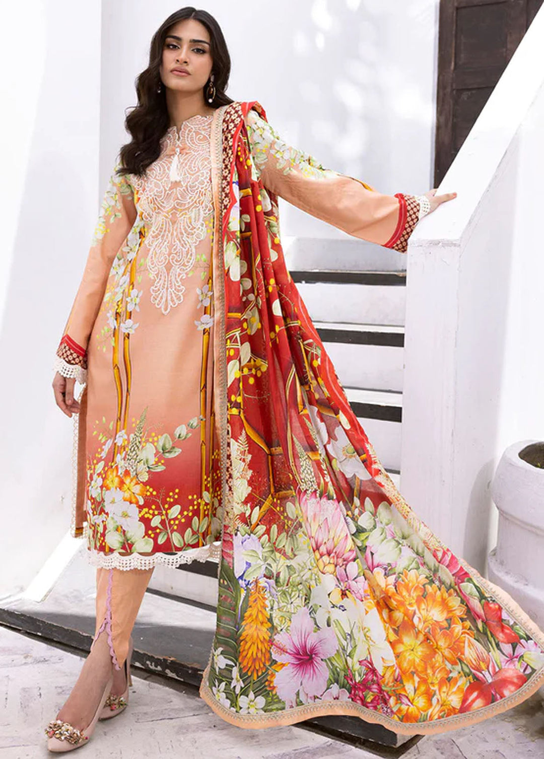 Leya by Roheenaz Embroidered Lawn Suits Unstitched 3 Piece RNZ24L RNZ-06A Mango Tango - Spring Summer Collection