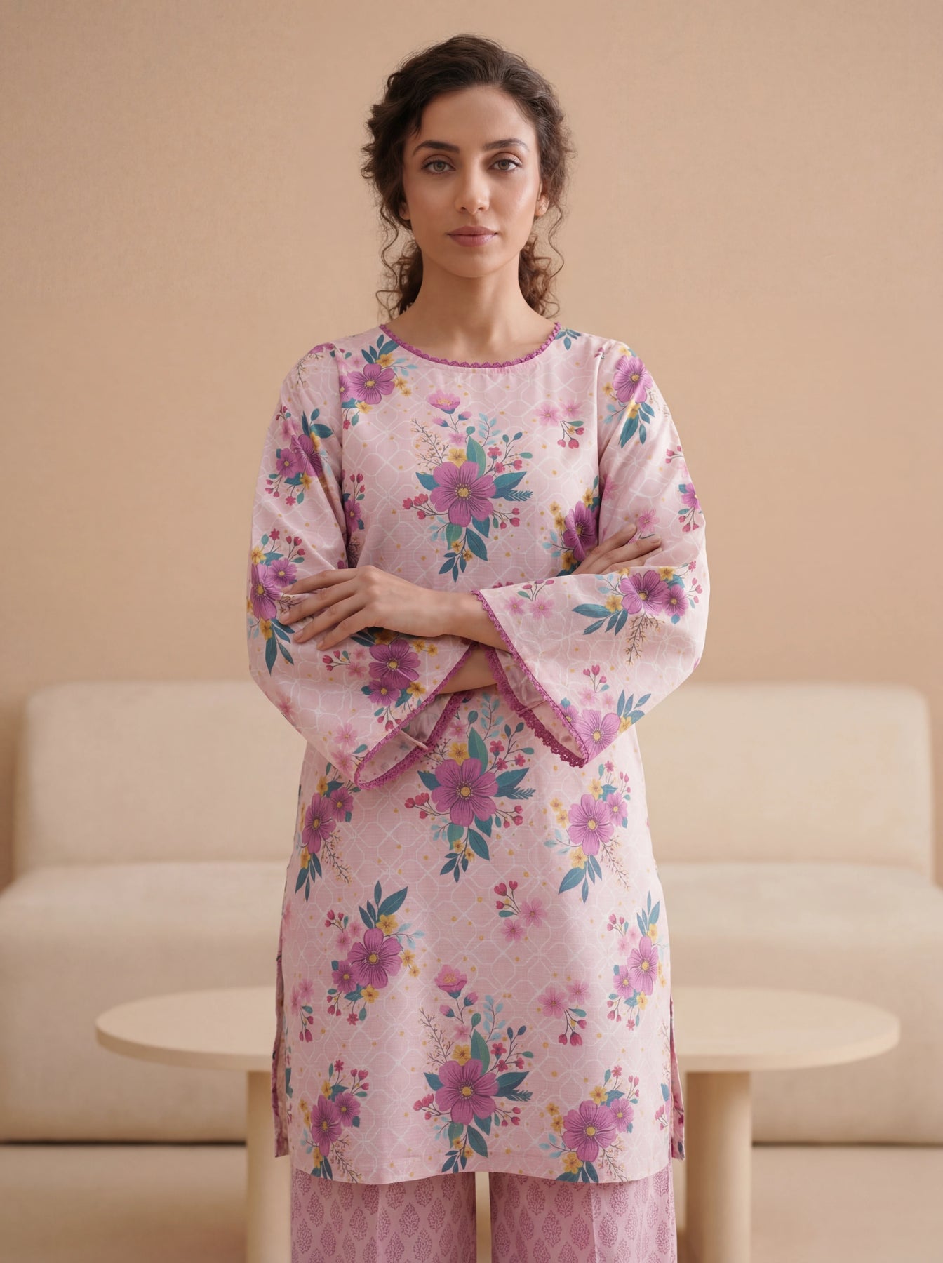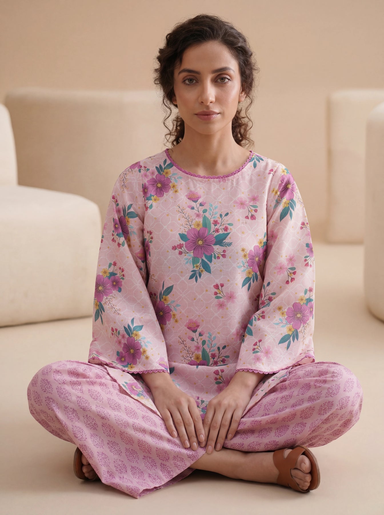 Soft lilac tones meet bold florals in a look that feels calm yet expressive. The shirt features a relaxed fit with large floral motifs and a clean neckline that keeps it balanced. Paired with contrast culottes, it creates a strong yet easy silhouette. Perfect for casual days, meet-ups, and summer outings.