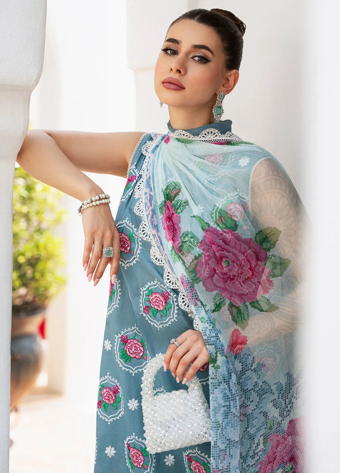 • Digital Printed And Embroidered Lawn Front 0.9 Yard