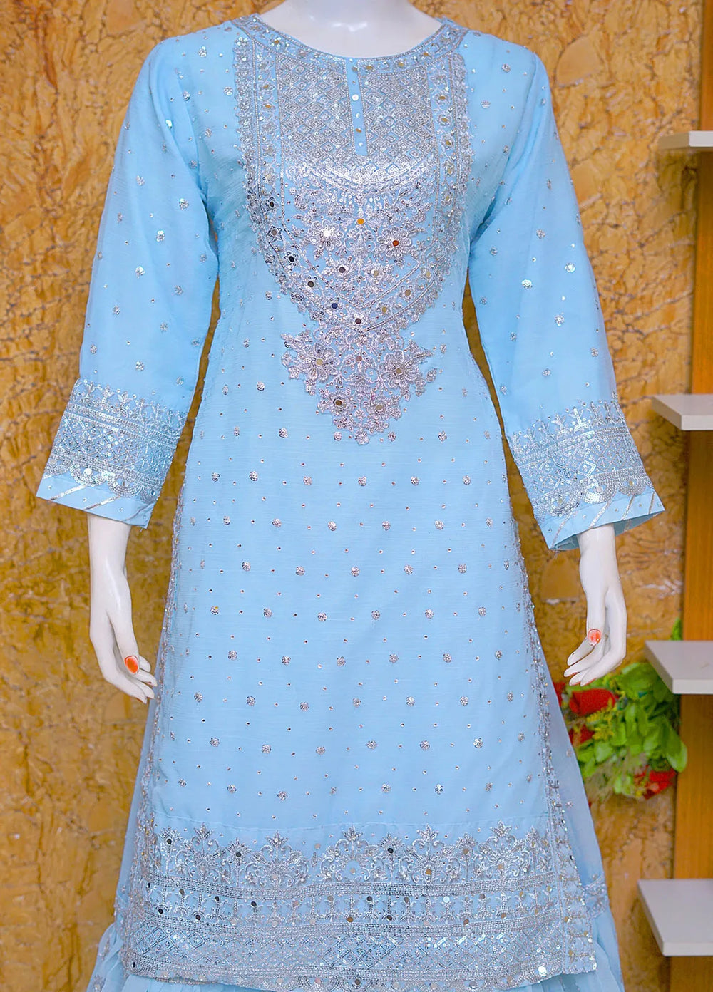 Saira Sultana Pret Embroidered Chiffon 3 Piece Suit Aleena Ice Blue
