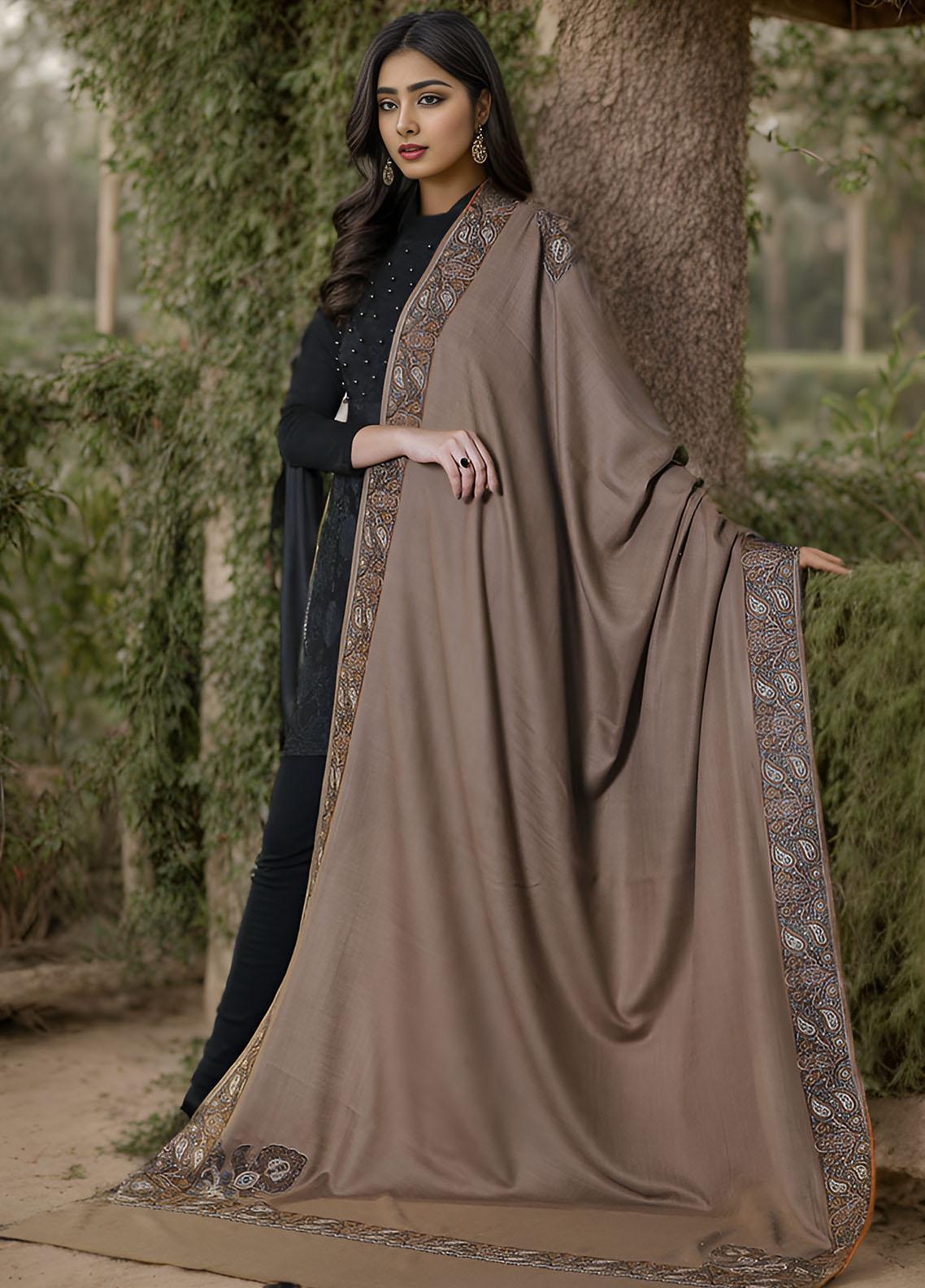 Sanaulla Exclusive Range Pashmina Mama D-18 D Brown - Women Shawls is available at sanaulla online store. We have complete variety of Shawls with us. Complete range of Sanaulla Exclusive Range available and 100% Original. We deliver Worldwide, and accept COD in Pakistan.