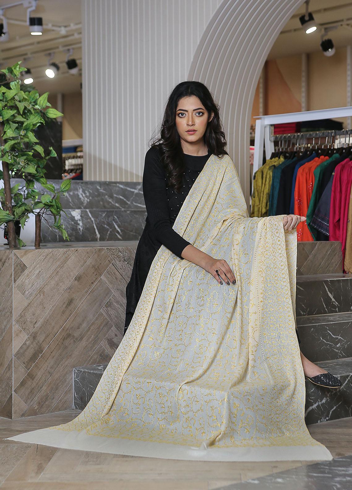 Sanaulla Exclusive Range Pashmina Mama D-20 Cream - Women Shawls is available at sanaulla online store. We have complete variety of Shawls with us. Complete range of Sanaulla Exclusive Range available and 100% Original. We deliver Worldwide, and accept COD in Pakistan.