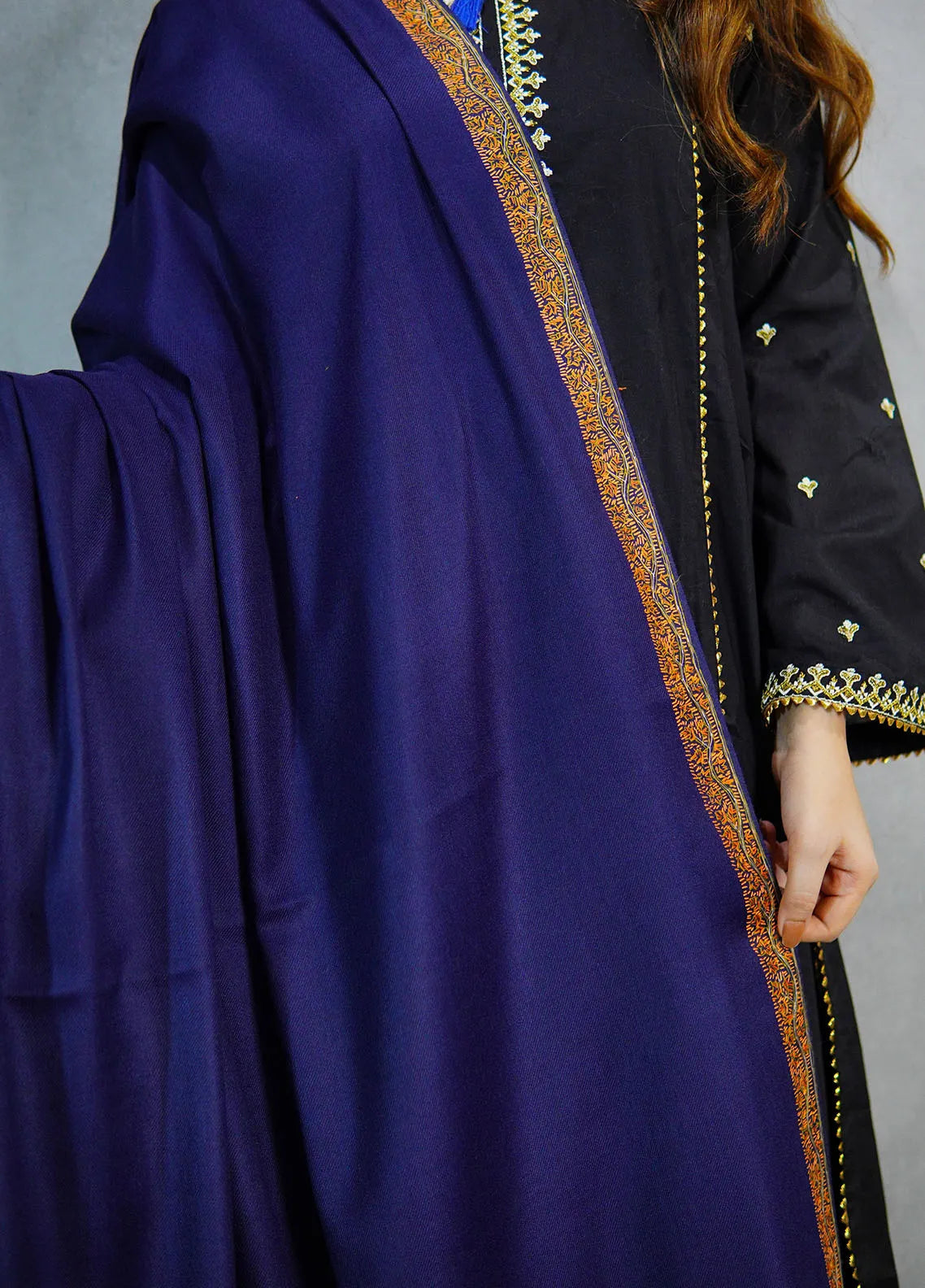 Sanaulla Exclusive Range Pashmina Shawl KPS D-28 Navy Blue 1 - Winter Collection