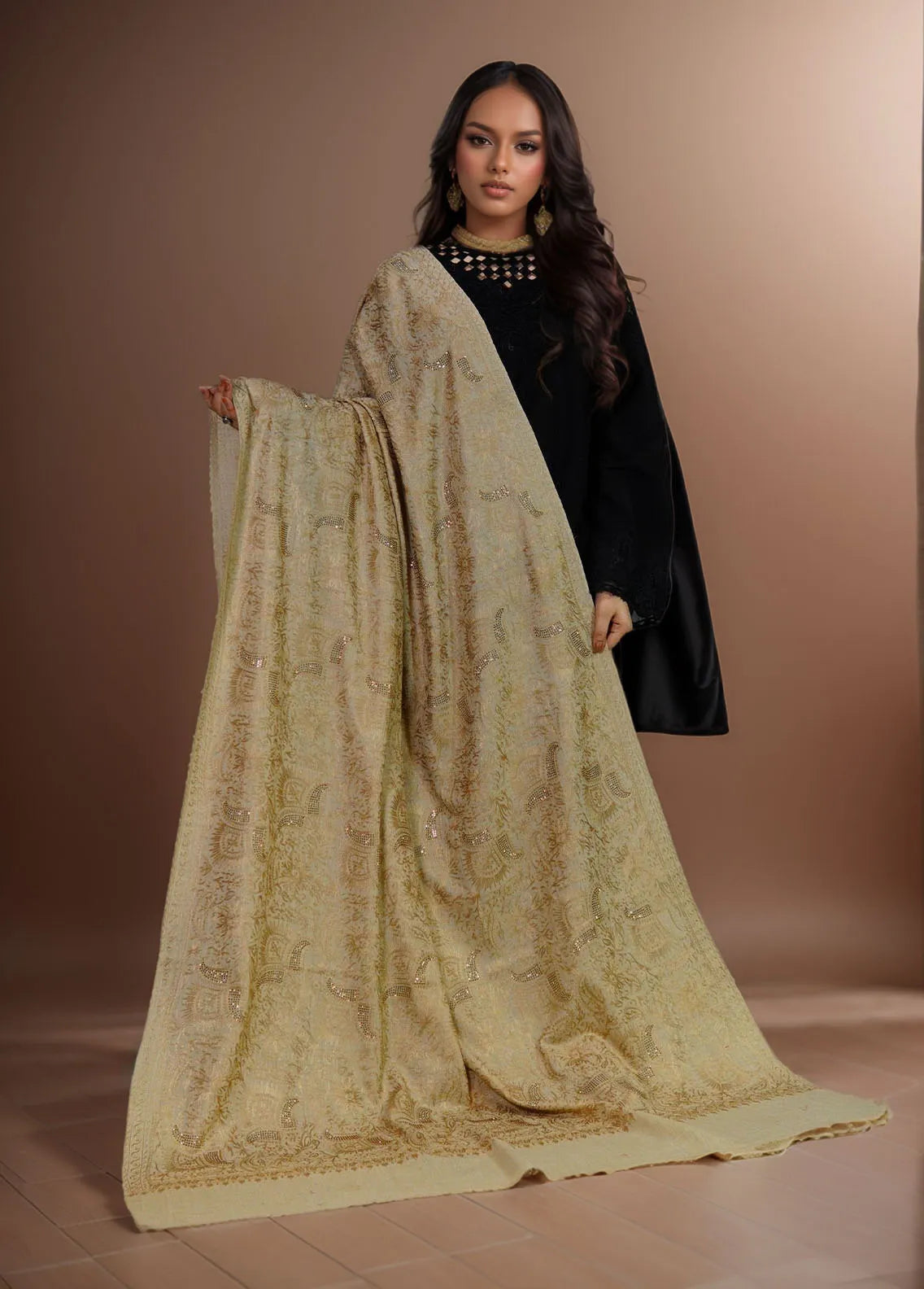 Sanaulla Exclusive Range Pashmina Shawl MAMA D-1 Cream - Winter Collection