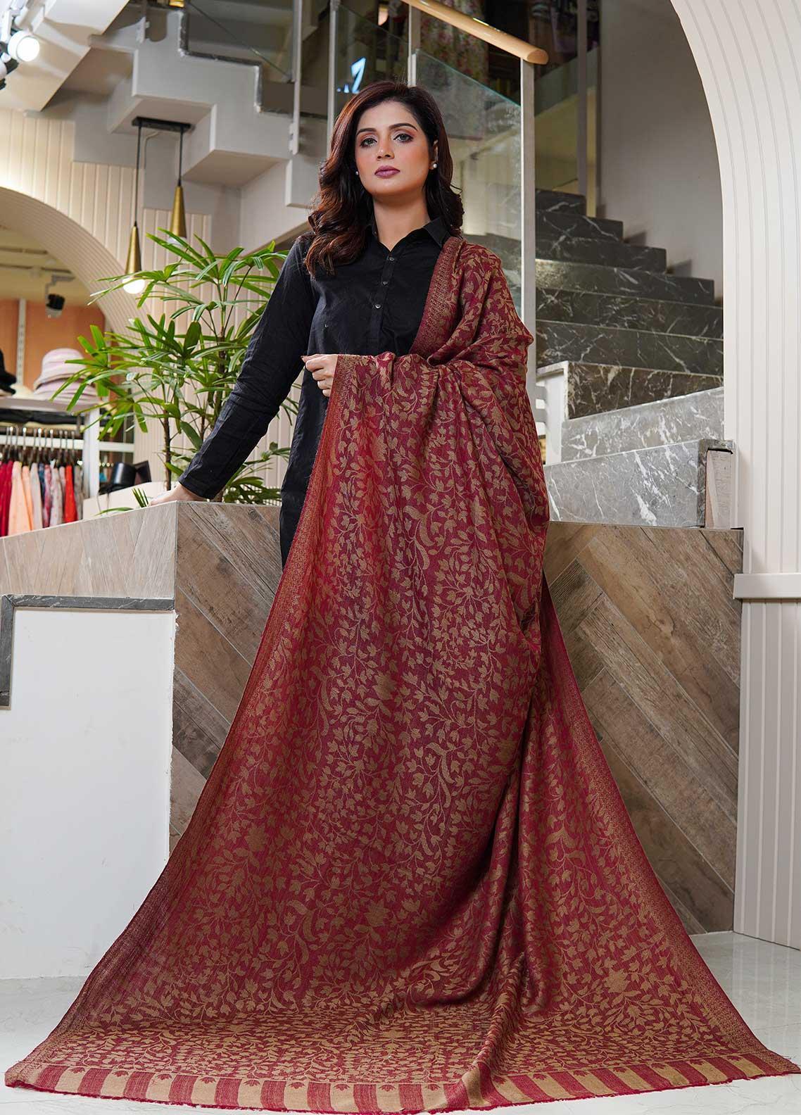 Sanaulla Exclusive Range Pashmina Shawls AKP-07 Maroon - Pashmina Shawls