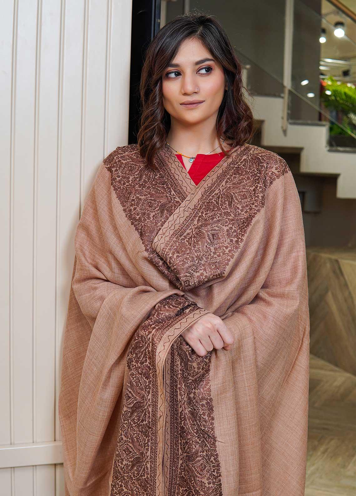 Sanaulla Exclusive Range Pashmina Shawls AKP-10 Brown 07 - Pashmina Shawls