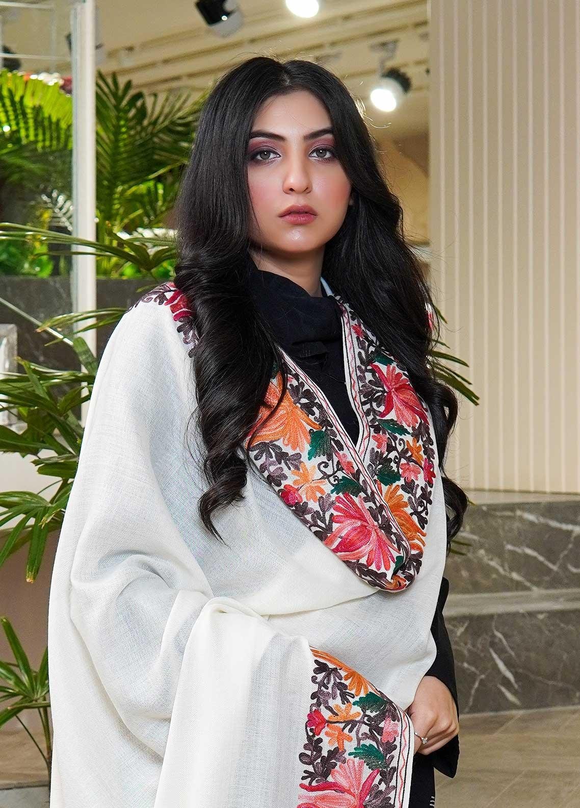Sanaulla Exclusive Range Pashmina Shawls AKP-15 Off White - Pashmina Shawls