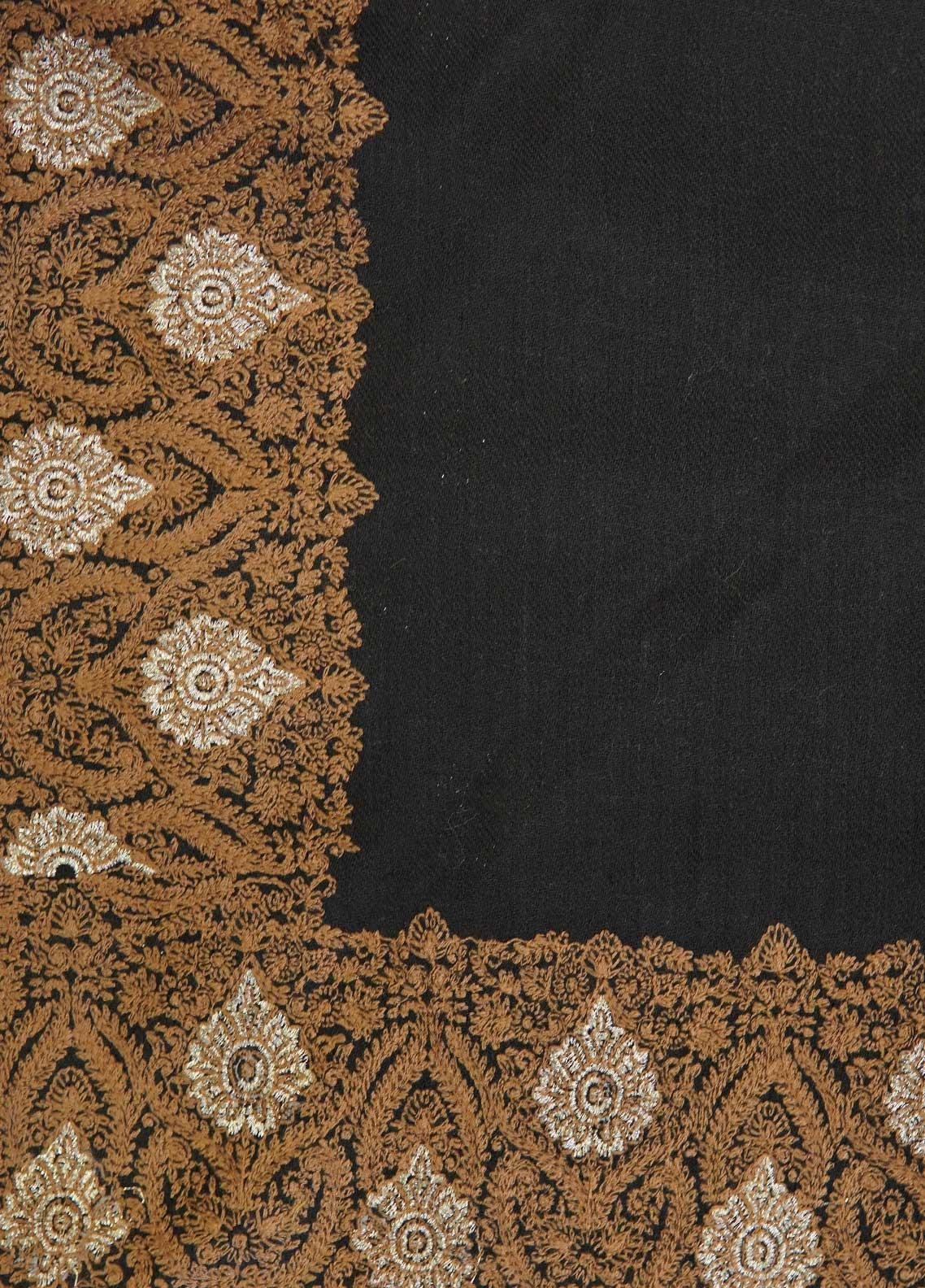 Sanaulla Exclusive Range Pashmina Shawls Mh Tilla Kallah Dour Ght KPS-18 Black03 - Pashmina Shawls