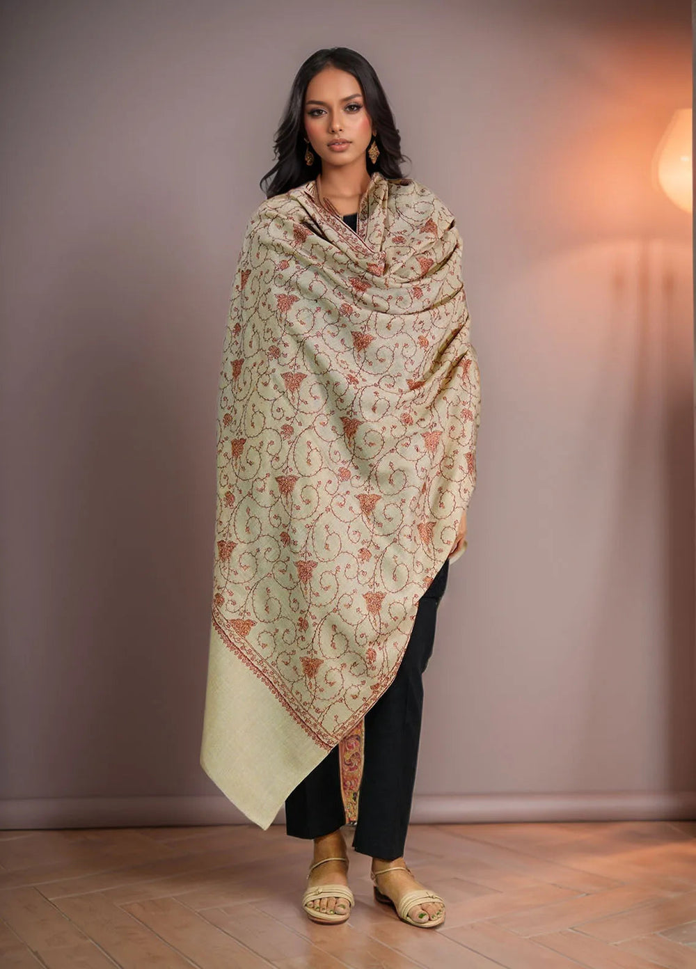 Sanaulla Exclusive Range Pashmina Shawl KPS D-38 Cream - Winter Collection