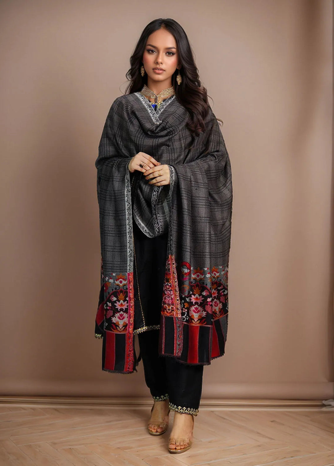 Sanaulla Exclusive Range Pashmina Shawl MAMA D-24 Dark Grey - Winter Collection