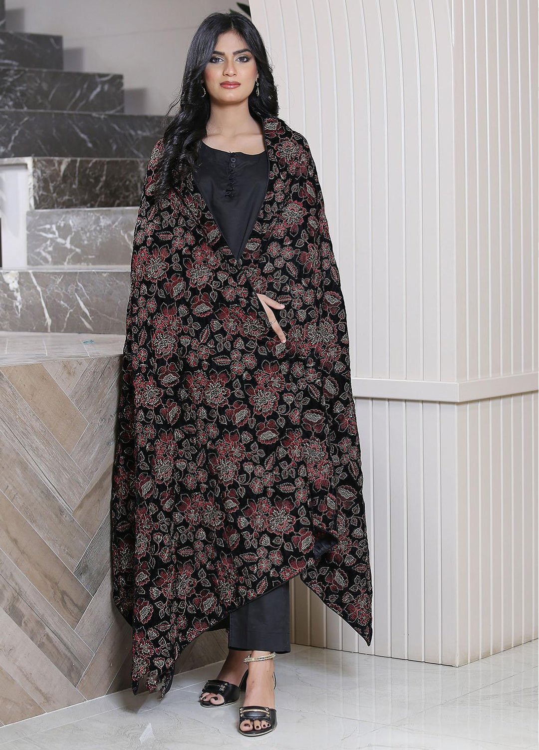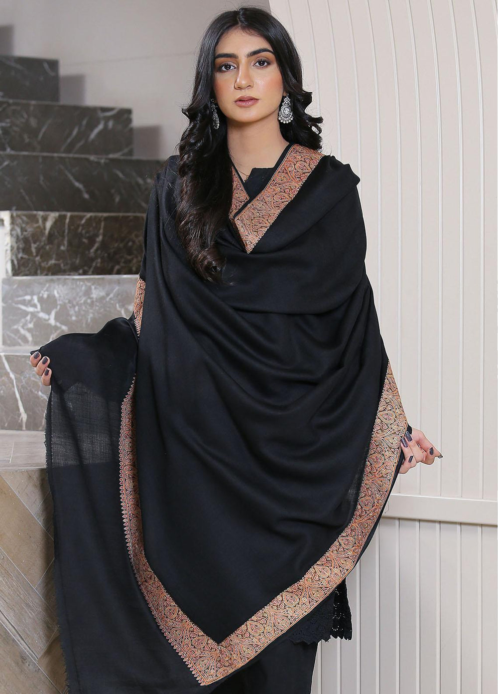 Sanaulla Exclusive Range Pashmina Shawl D-37 Black 1 - Winter Collection