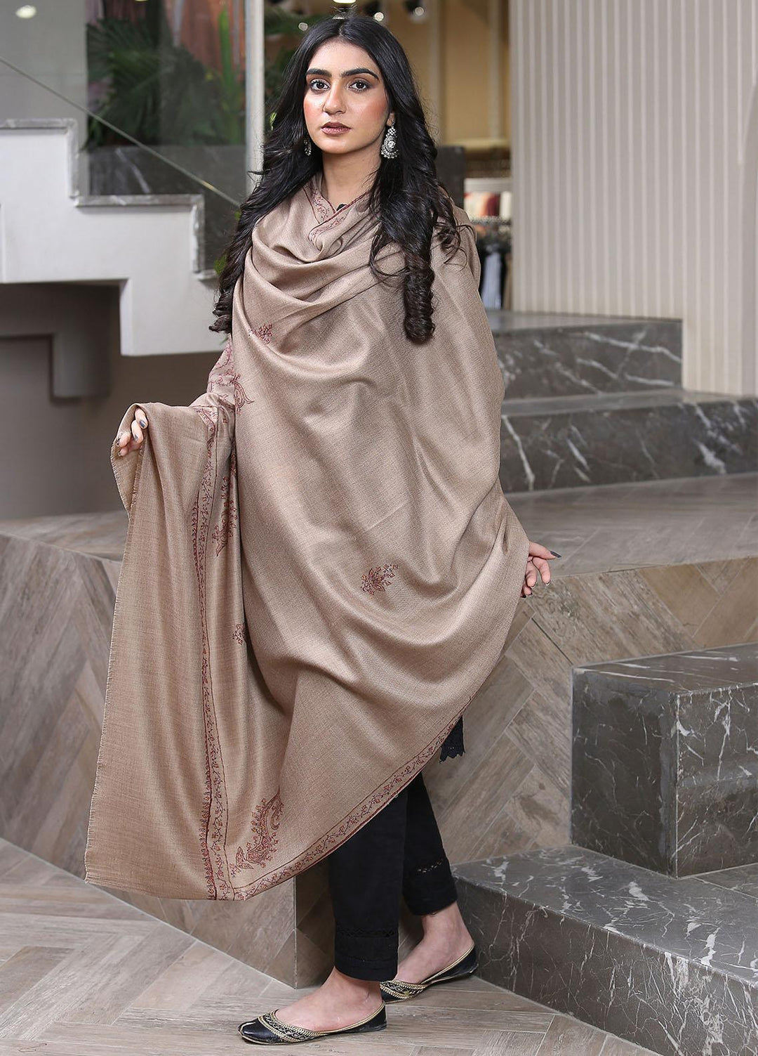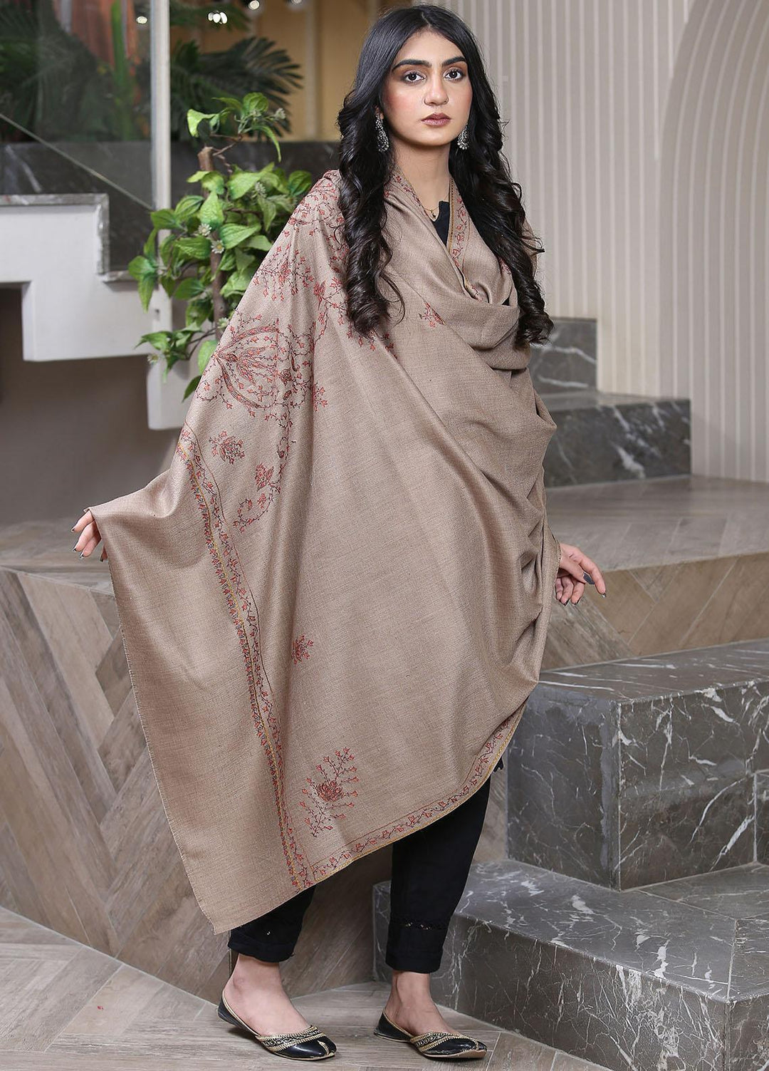 Sanaulla Exclusive Range Pashmina Shawl D-18 Brown 5 - Winter Collection