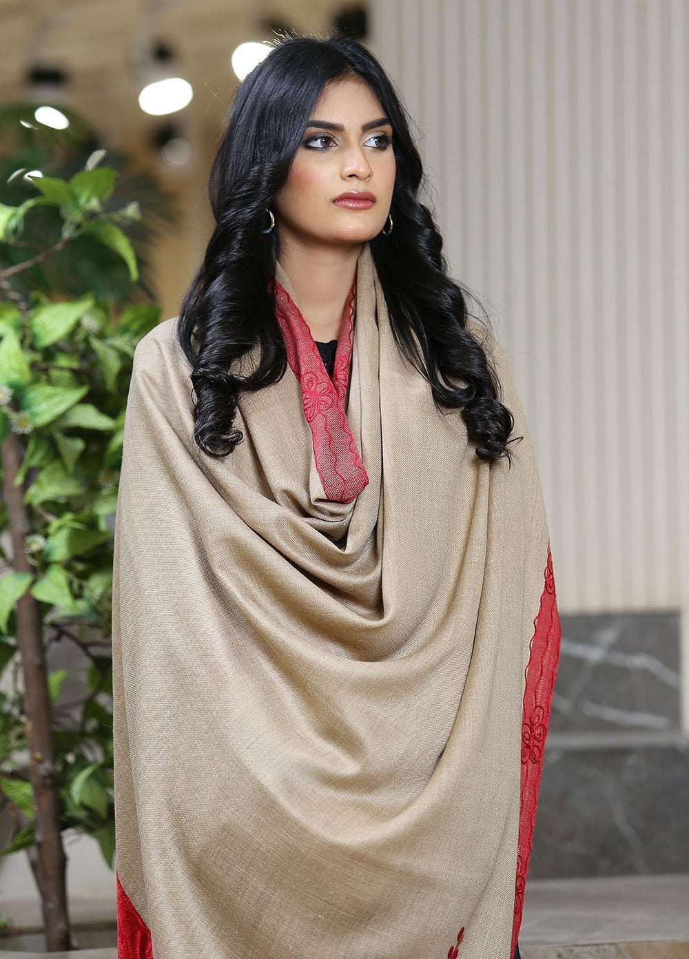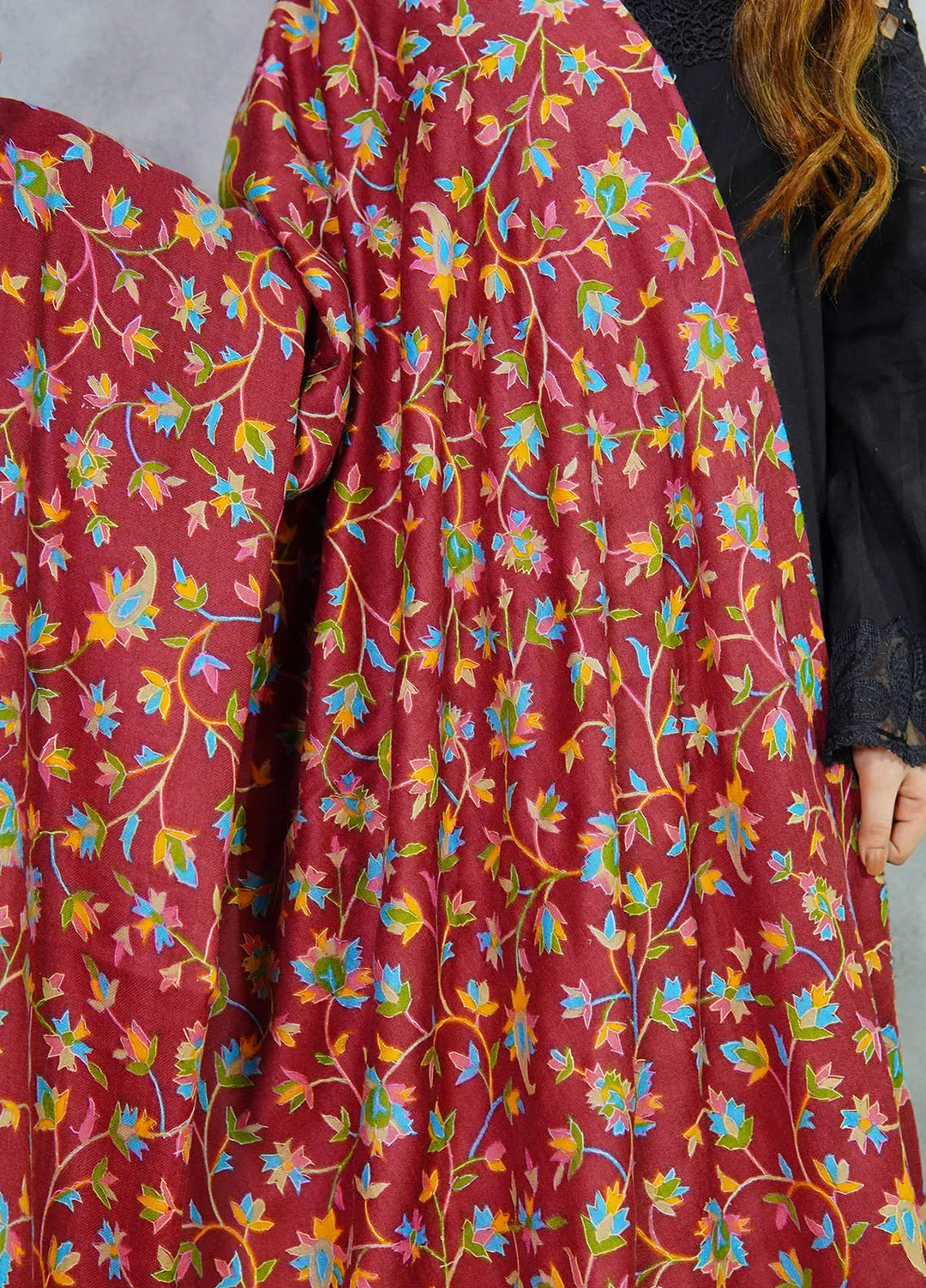 Sanaulla Exclusive Range Pashmina Shawl D-16 Mehroon 6 - Winter Collection