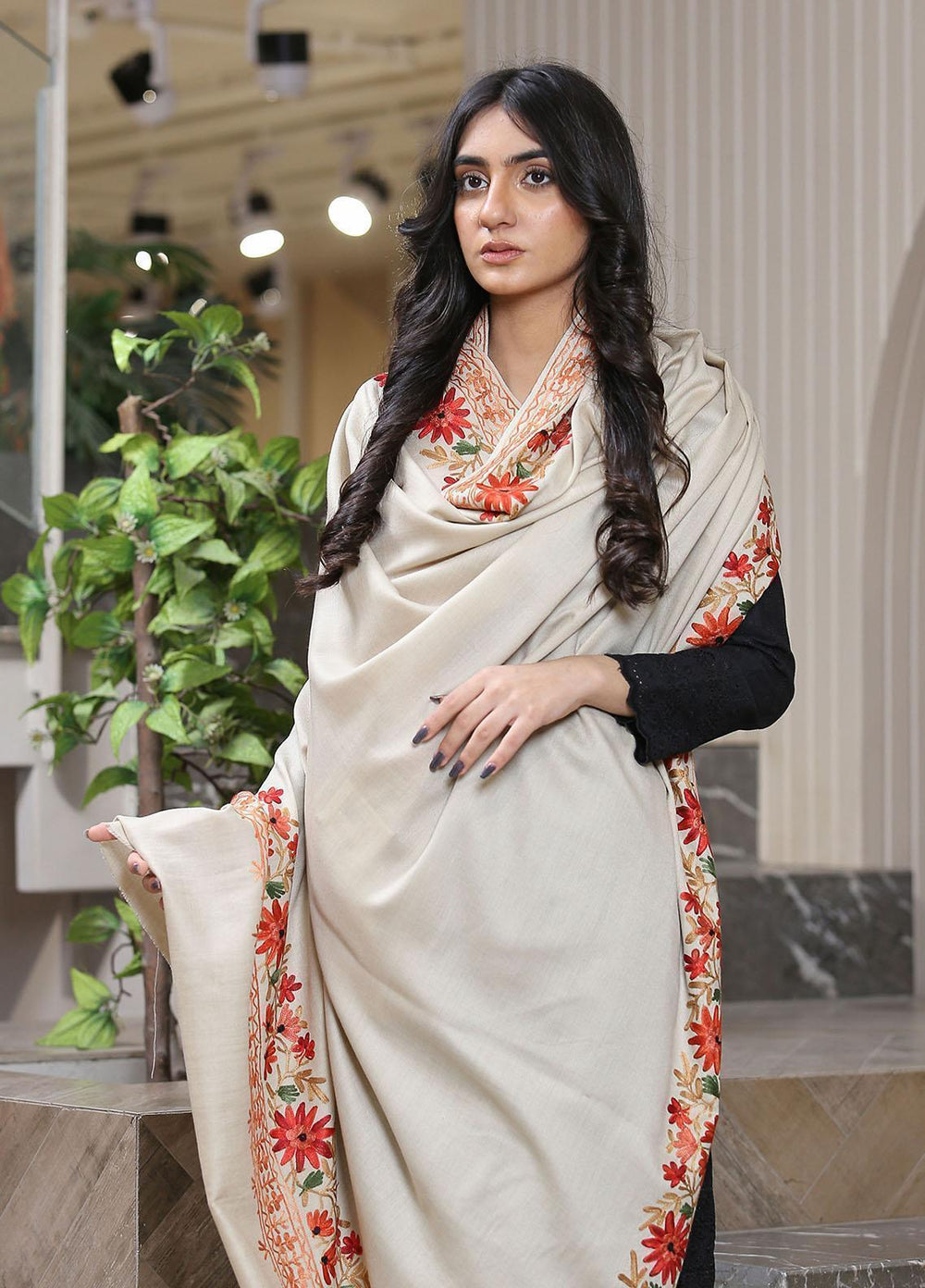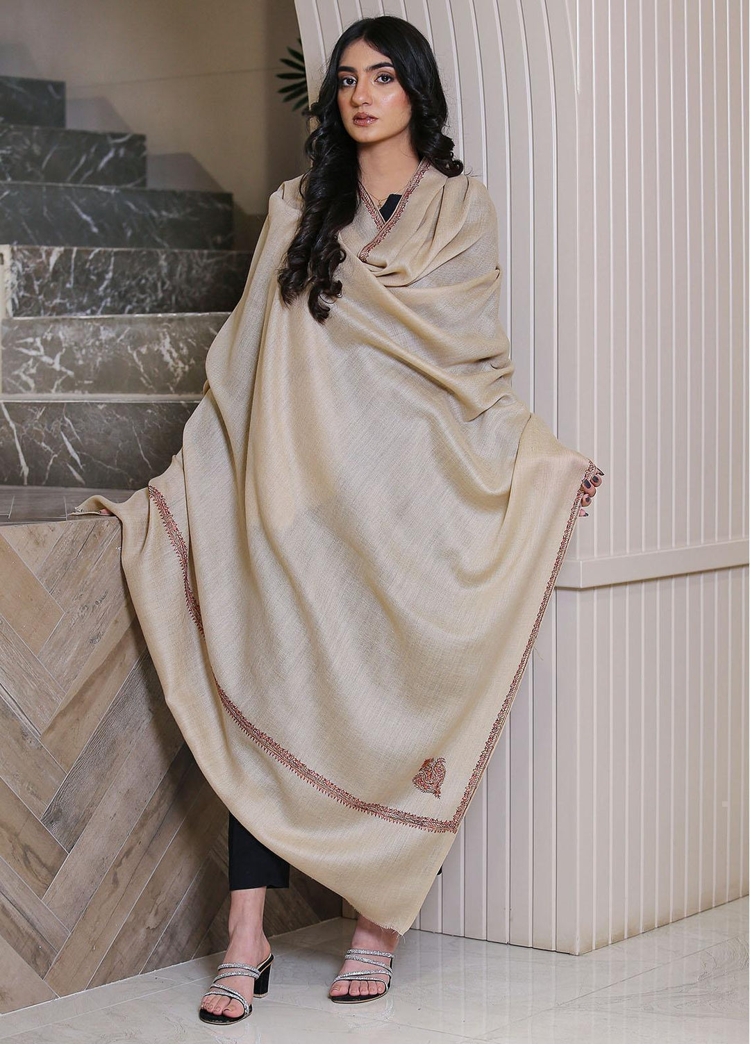 Sanaulla Exclusive Range Pashmina Shawl D-28 Cream - Winter Collection