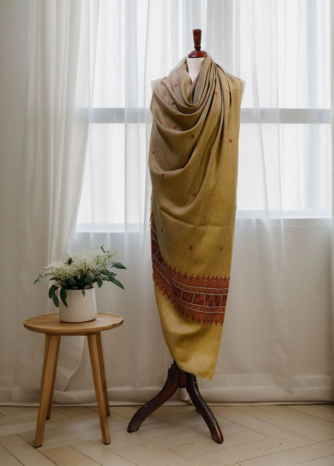 Sanaulla Exclusive Range Pashmina Shawl D-16 Light Brown 5 - Winter Collection
