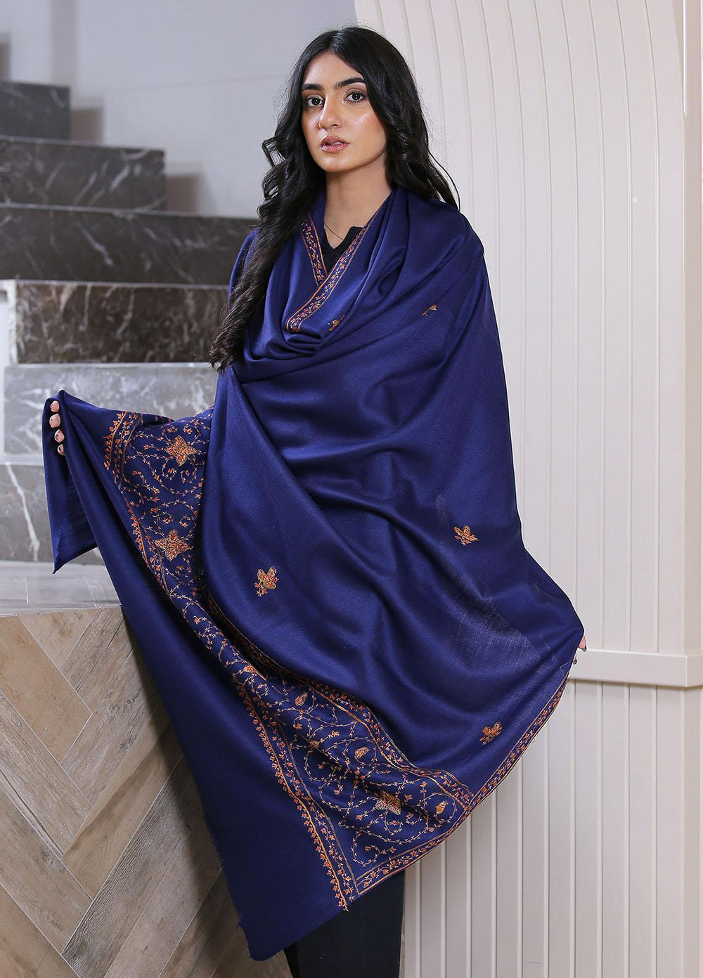 Sanaulla Exclusive Range Pashmina Shawl D-37 Dark Blue 3 - Winter Collection